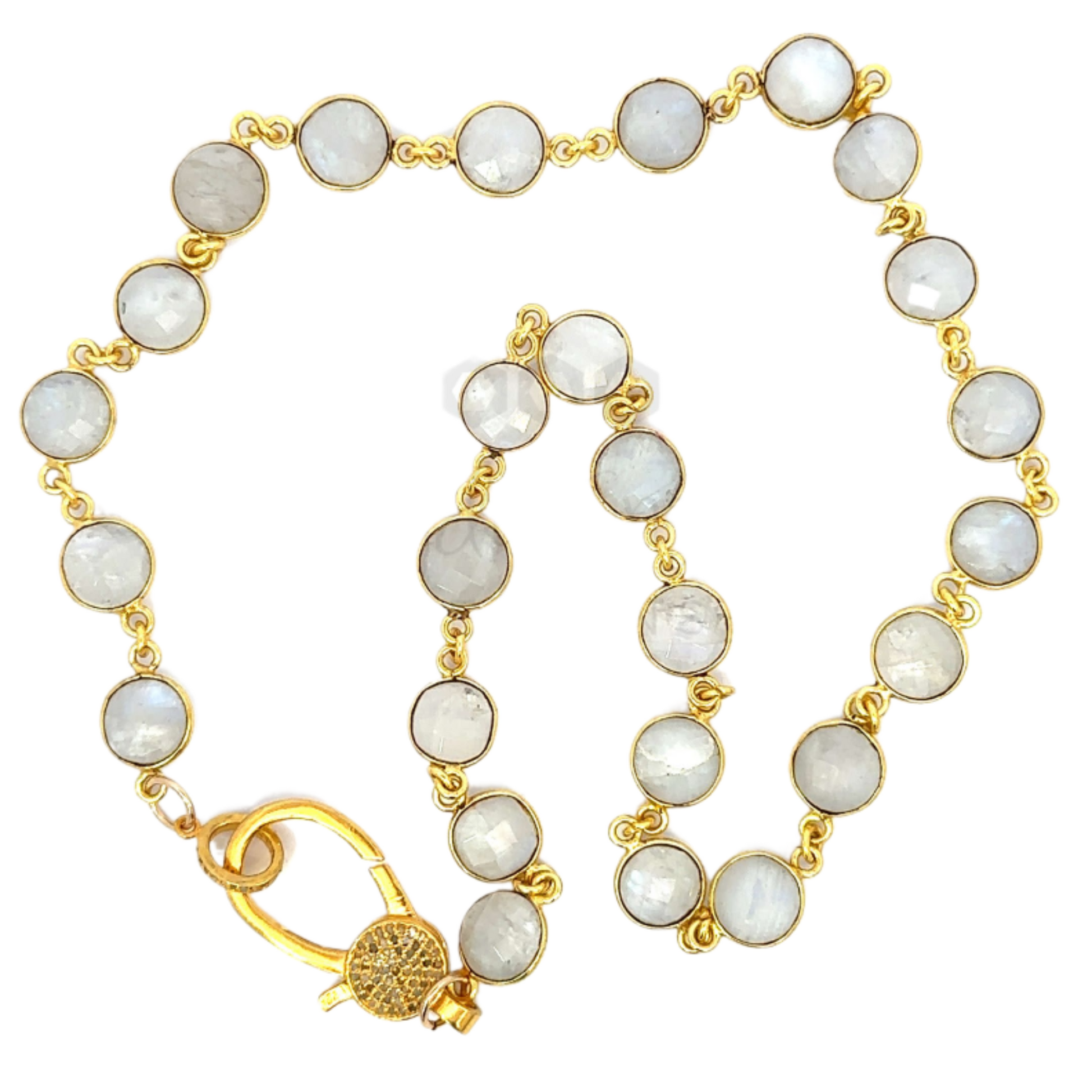18" Bezeled Moonstone Gold Vermeil Chain with Pave Lobster