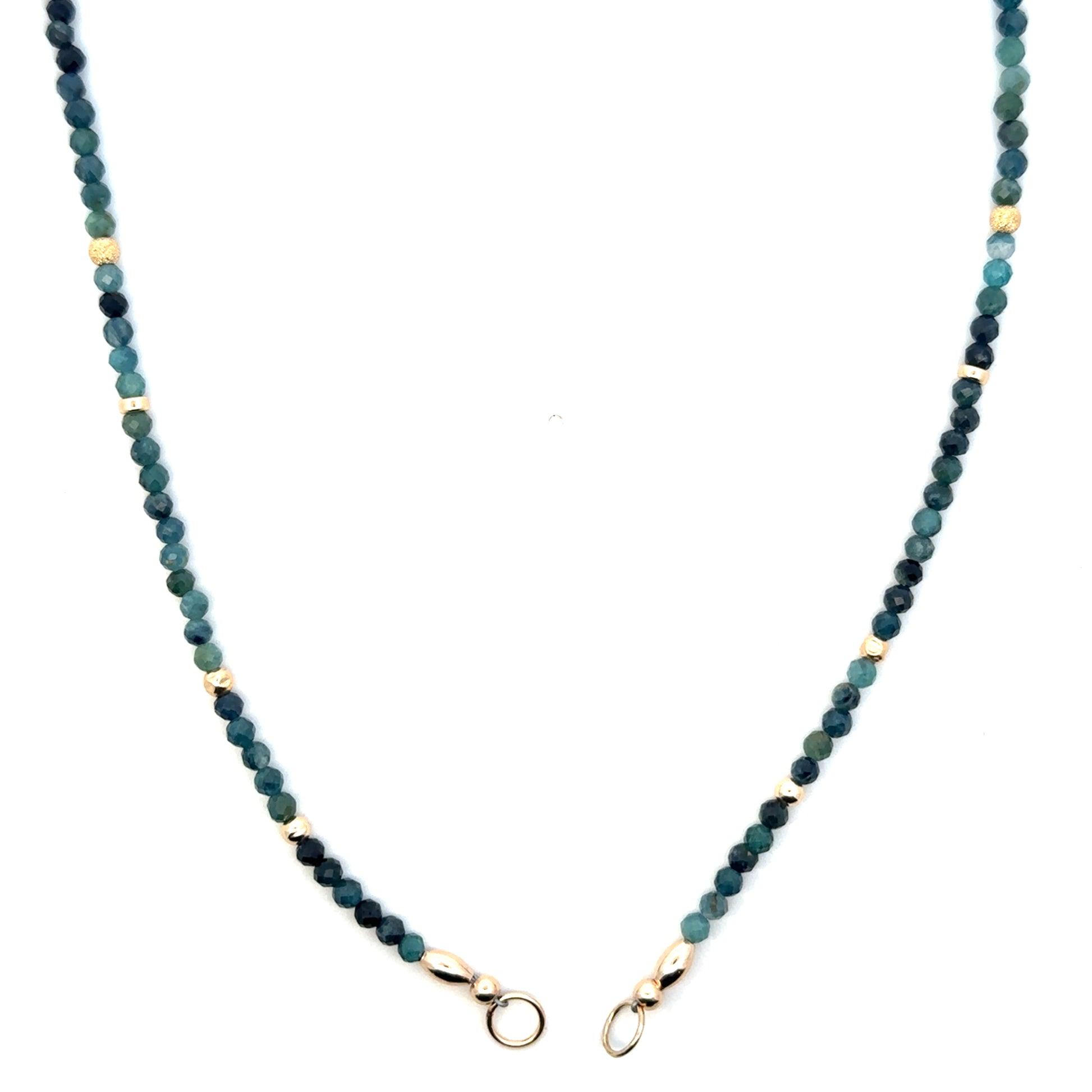 3mm Blue Tourmaline and GF Bead Open Bail Necklace