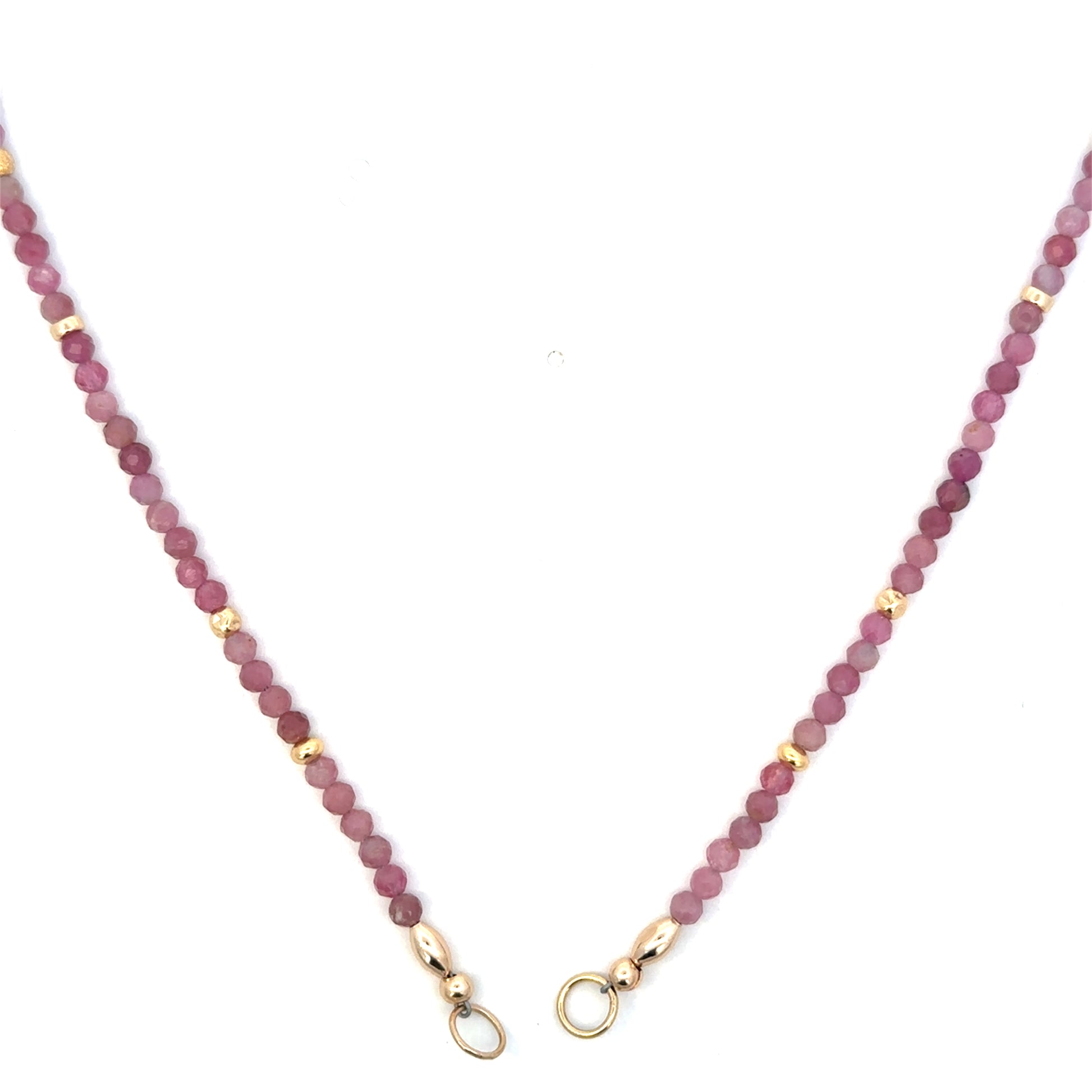 3mm Pink Tourmaline and GF Bead Open Bail Necklace