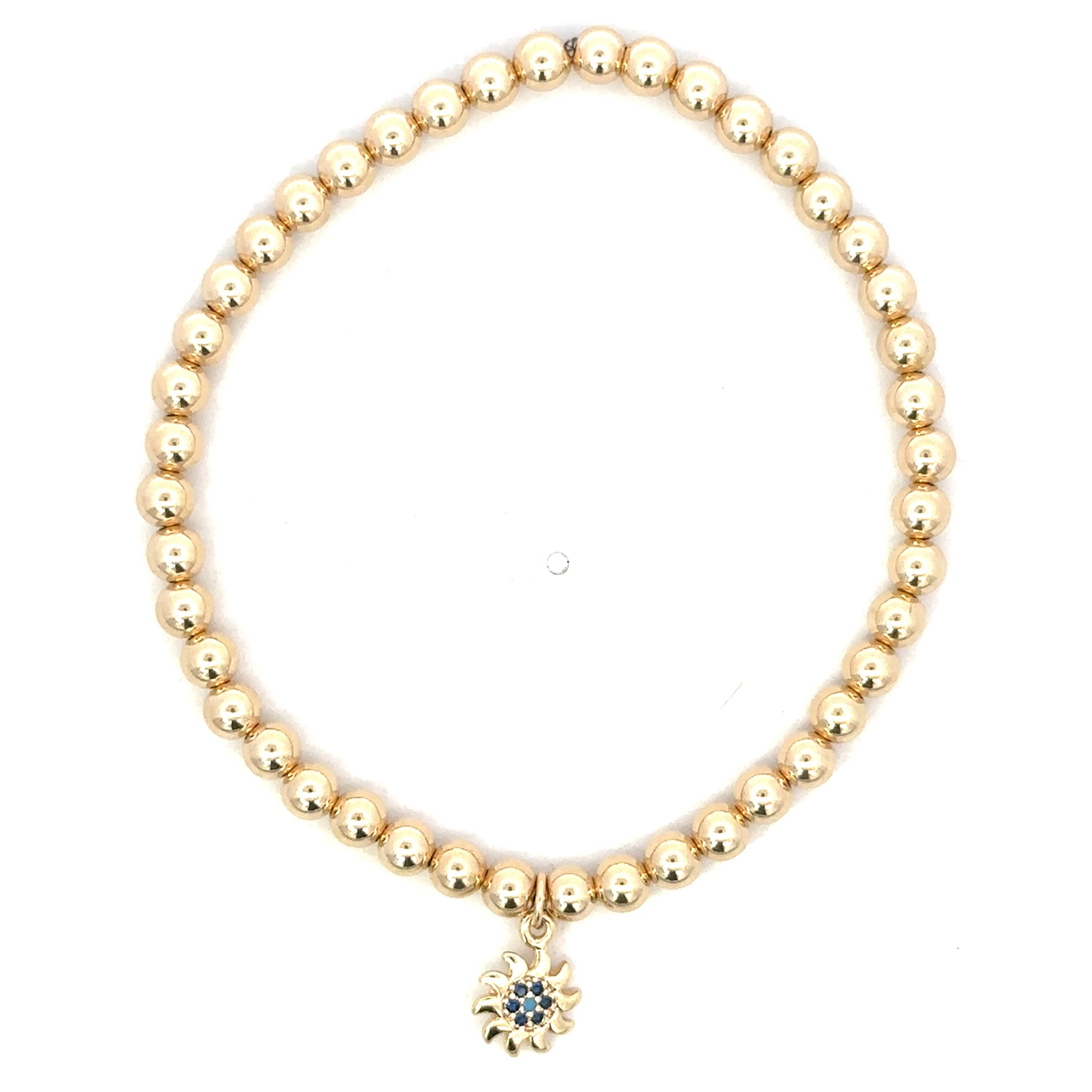 Gold Filled Bead Bracelet with Blue Crystal Swirl Charm