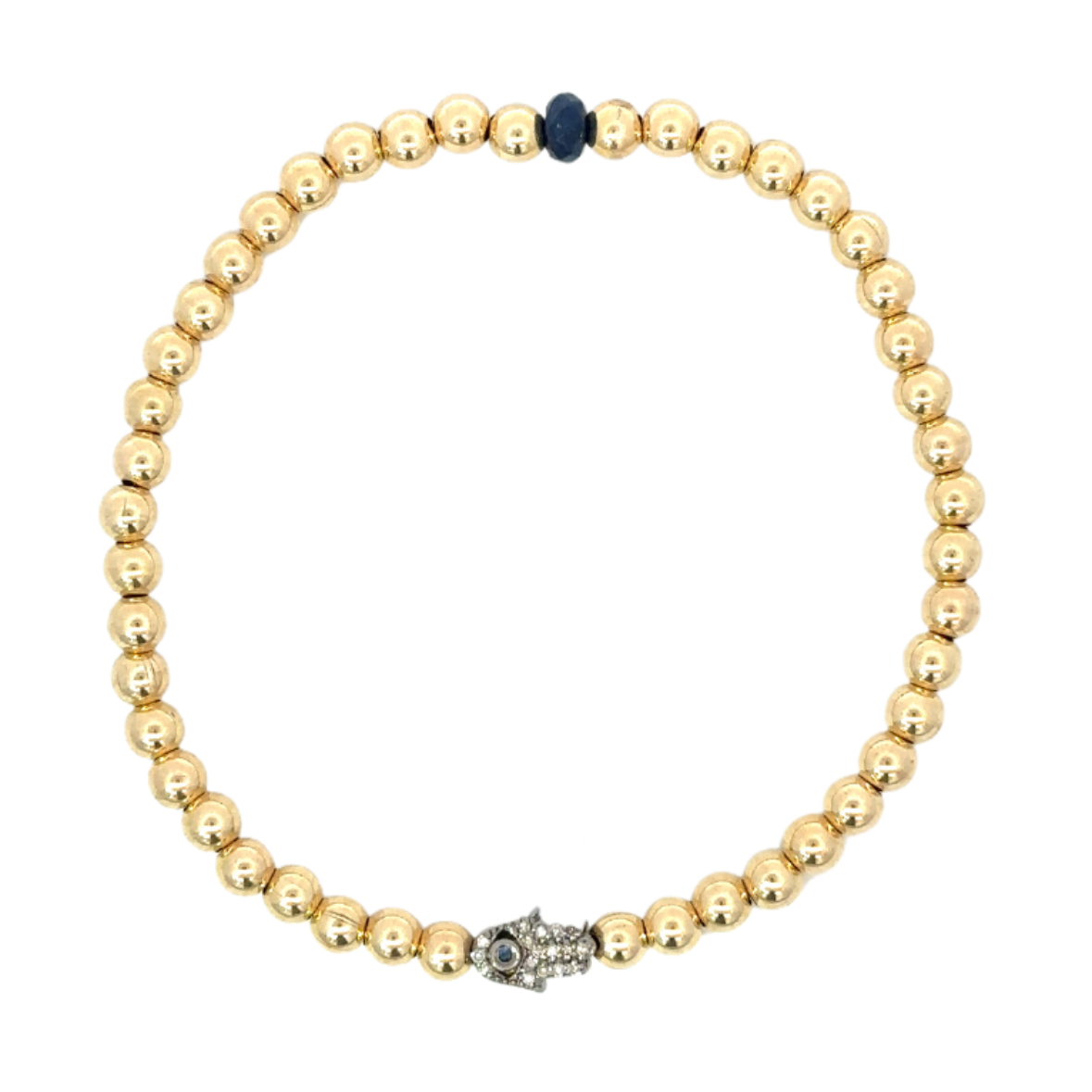 Gold Filled Bead Bracelet with Sterling Hamsa Charm