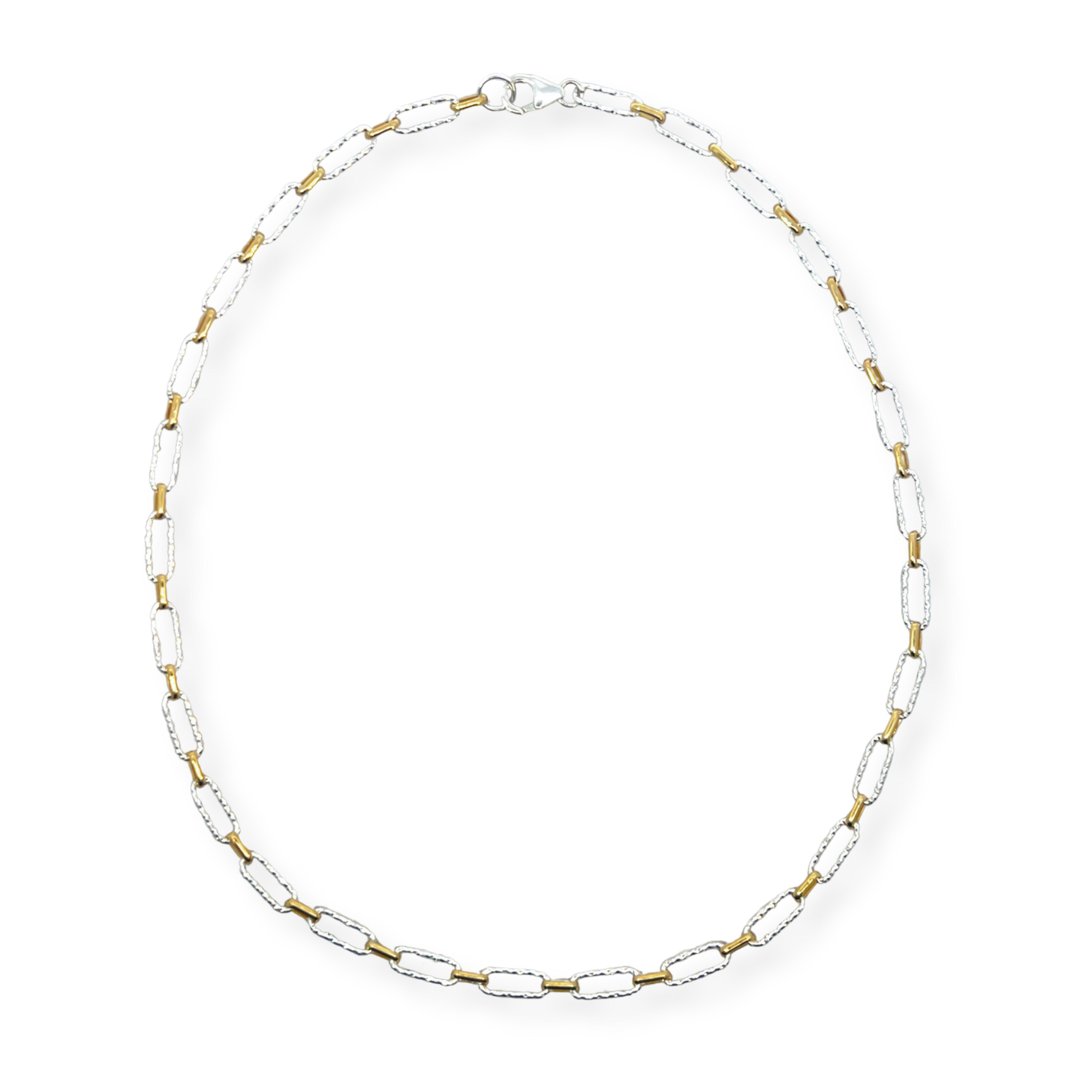 14K gold filled and diamond cut sterling silver alternating link chain.