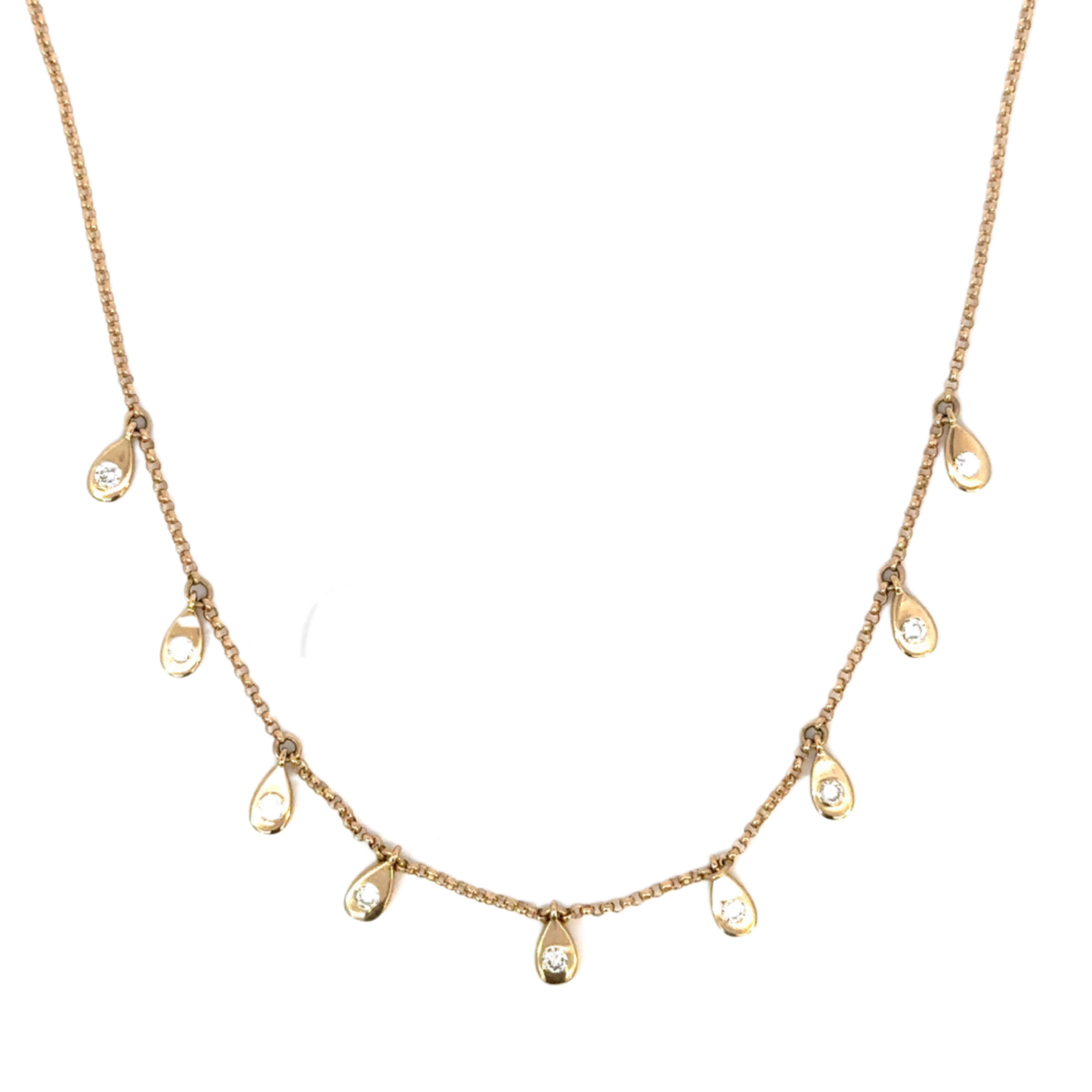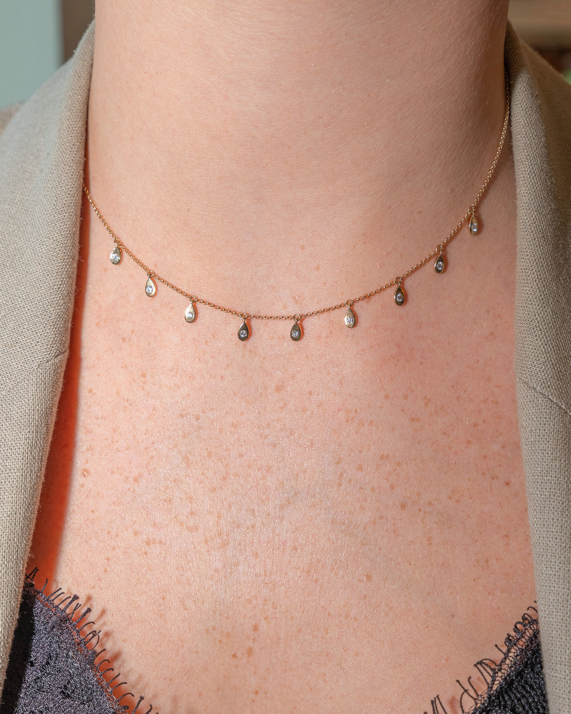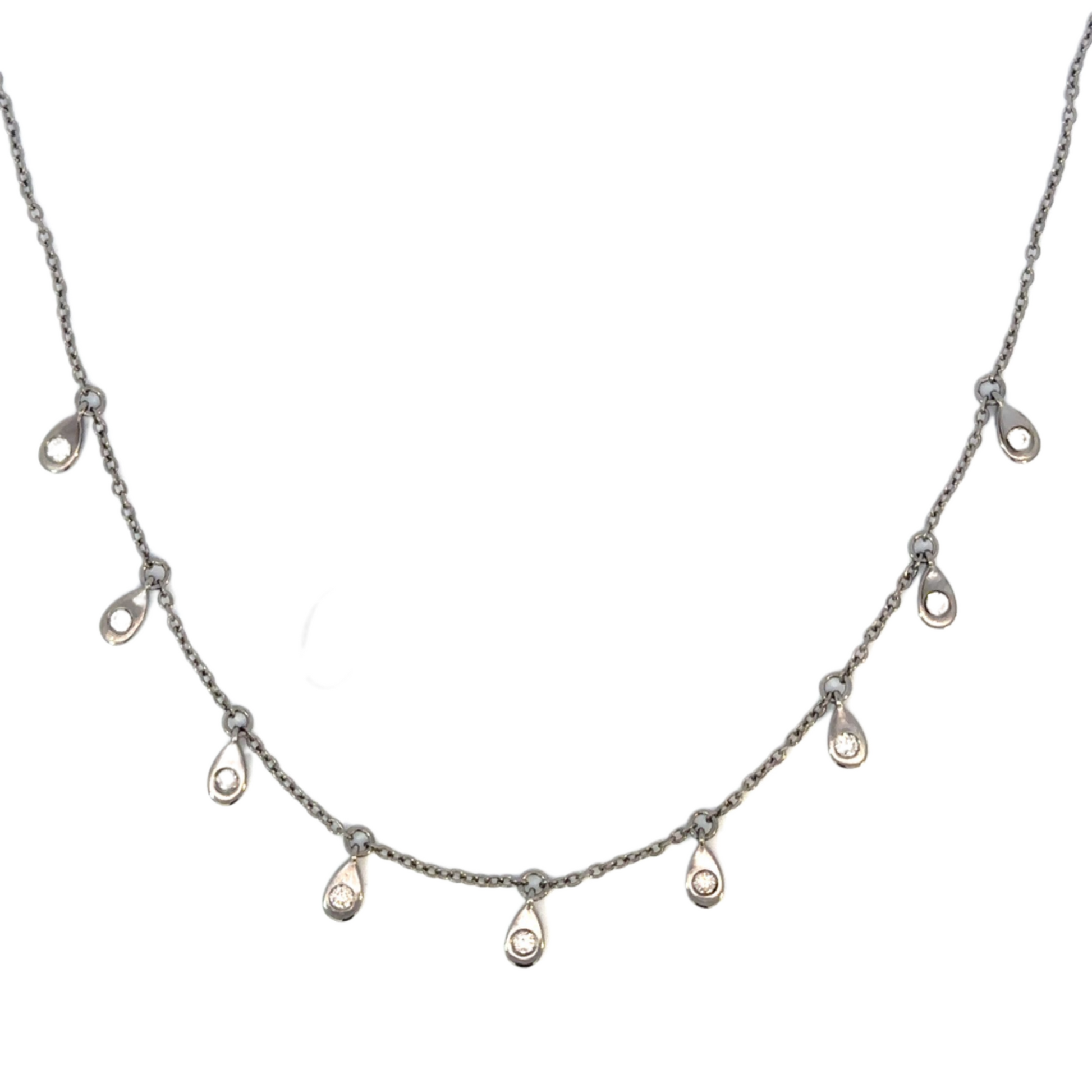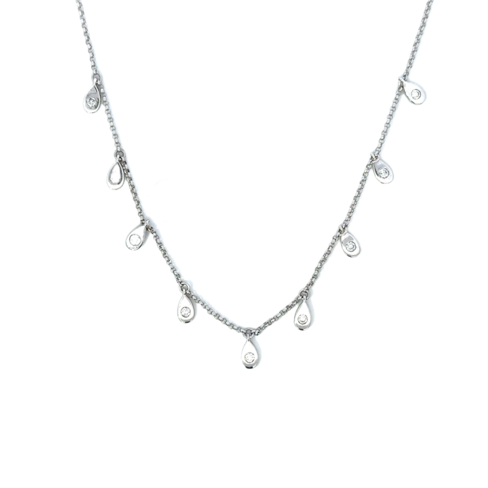 Bezeled Diamond Multi Tear Drop Station Necklace