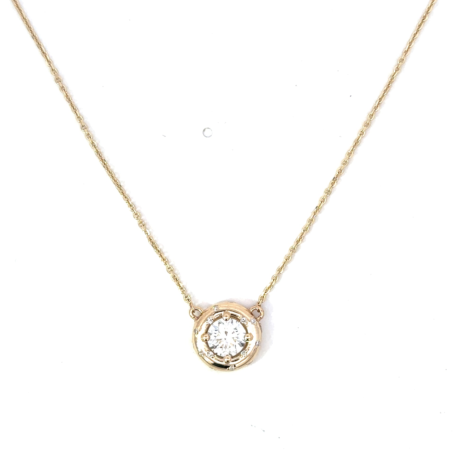 Adjustable 16-18" necklace featuring an 11.3mm round 1ct lab-grown diamond set in 14k yellow gold.