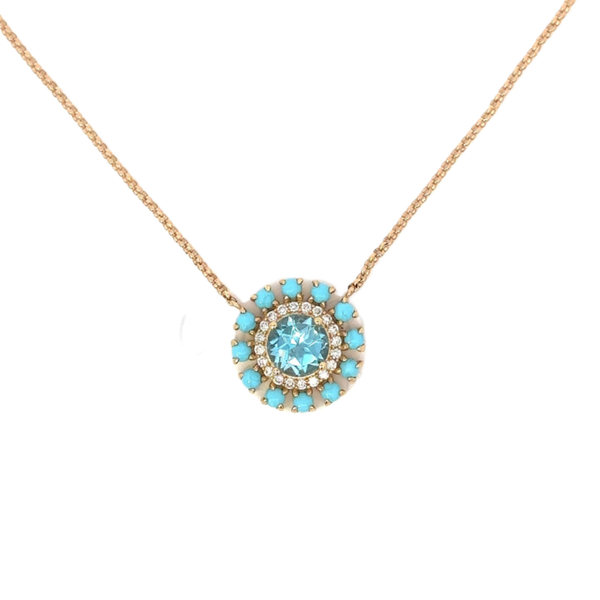 Blue Topaz Pendant Necklace with Turquoise Pave Halo