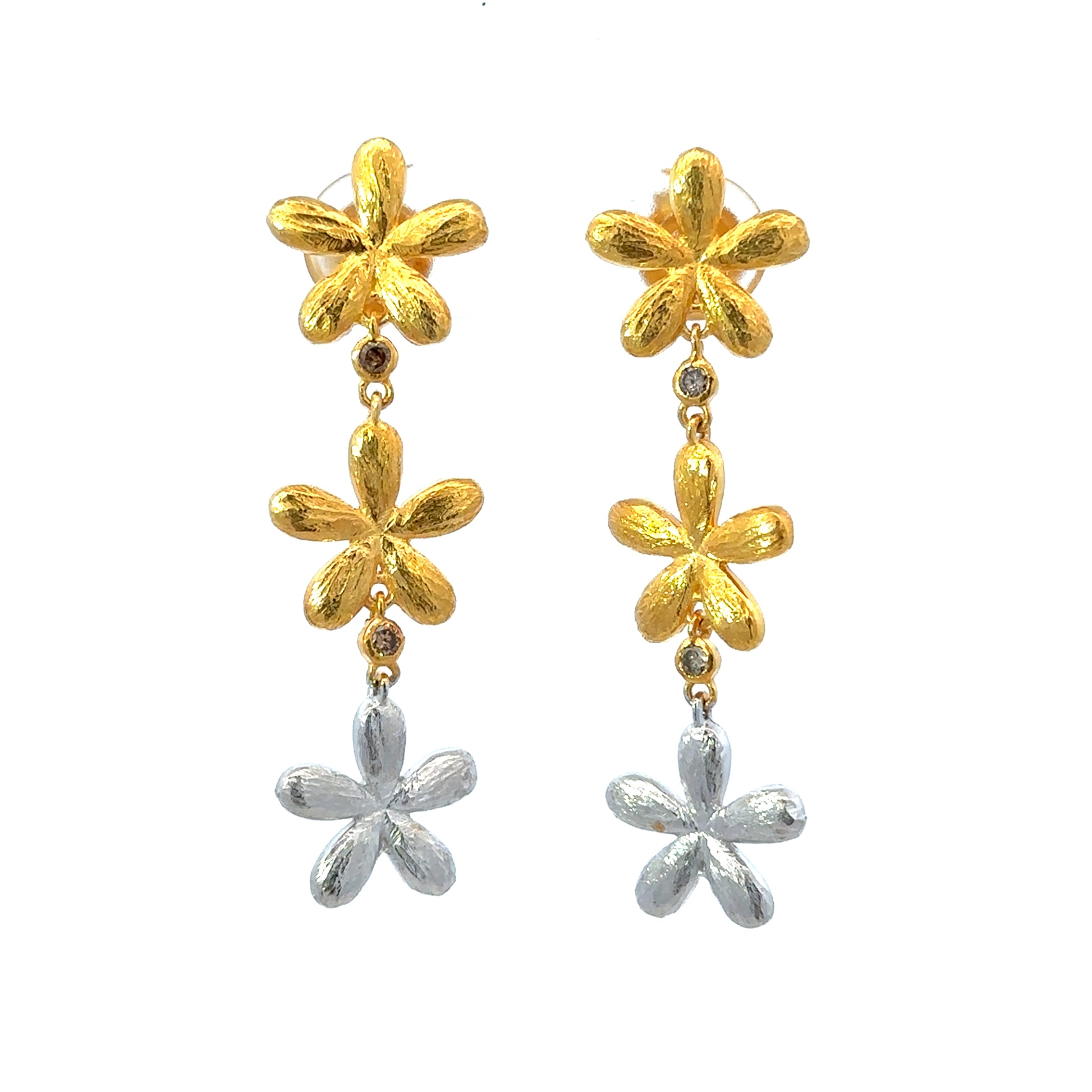 Brushed Vermeil and Sterling Triple Flower Earring with Diamonds