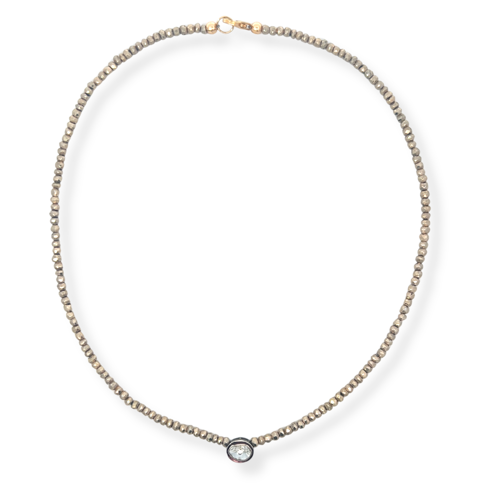 Coated Pyrite Bead Necklace with Rose Cut Diamond