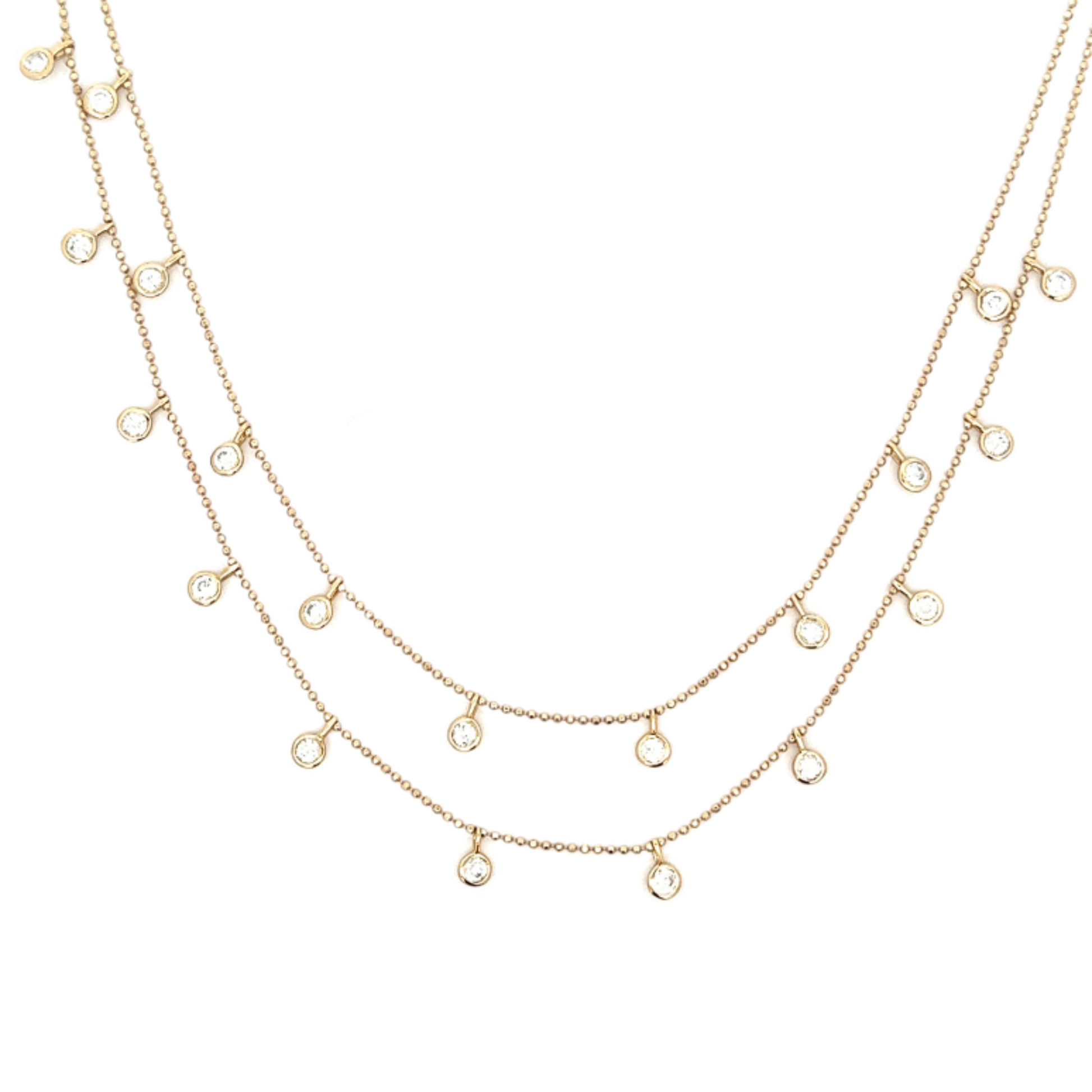 Double Layer Yellow Gold Bezeled CZ Station Necklace