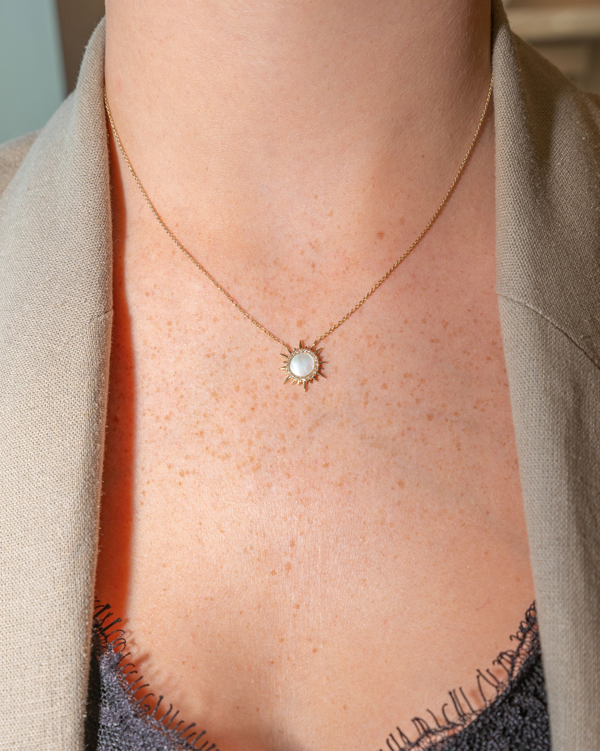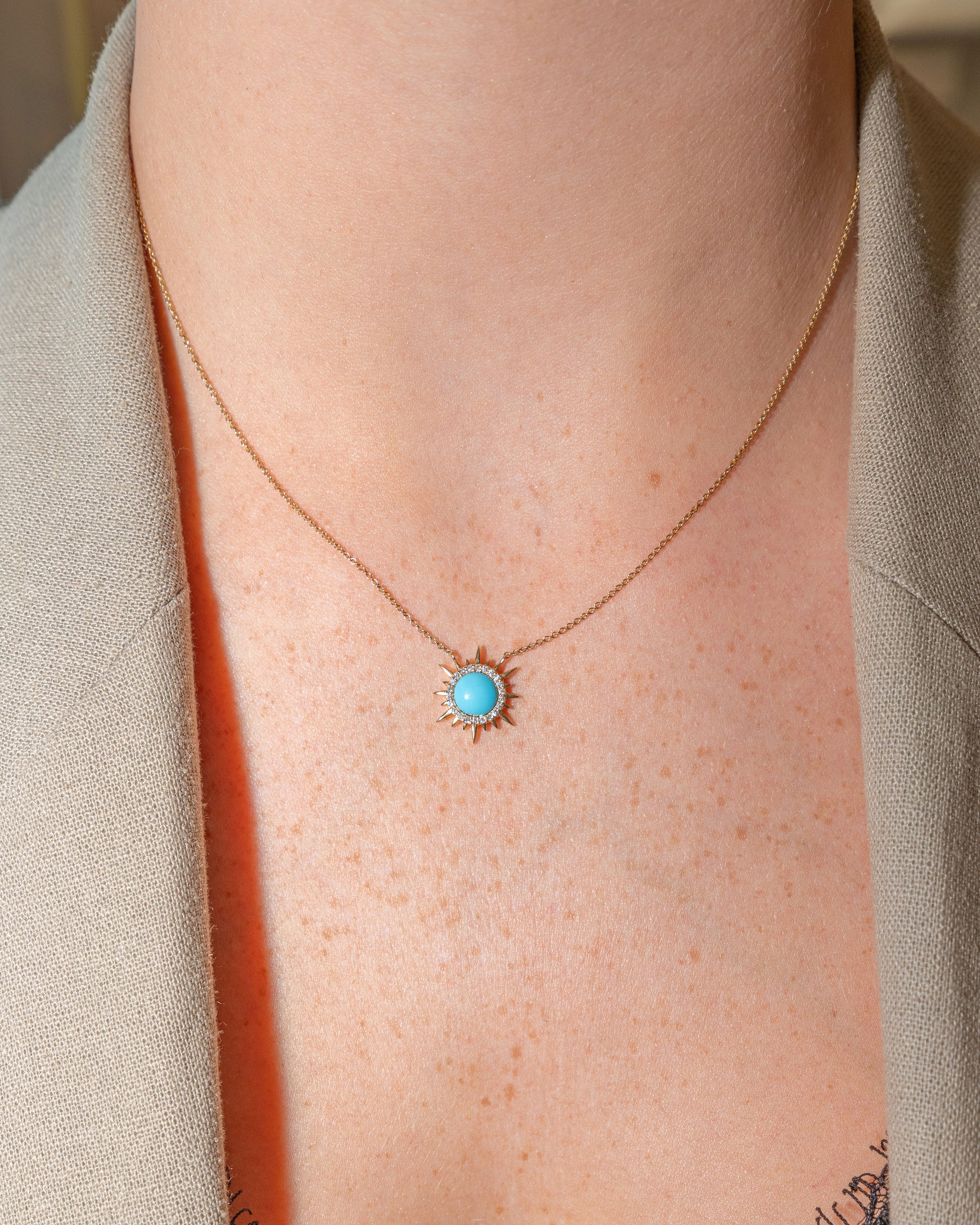 Enamel Sunburst Necklace with Pave Diamonds