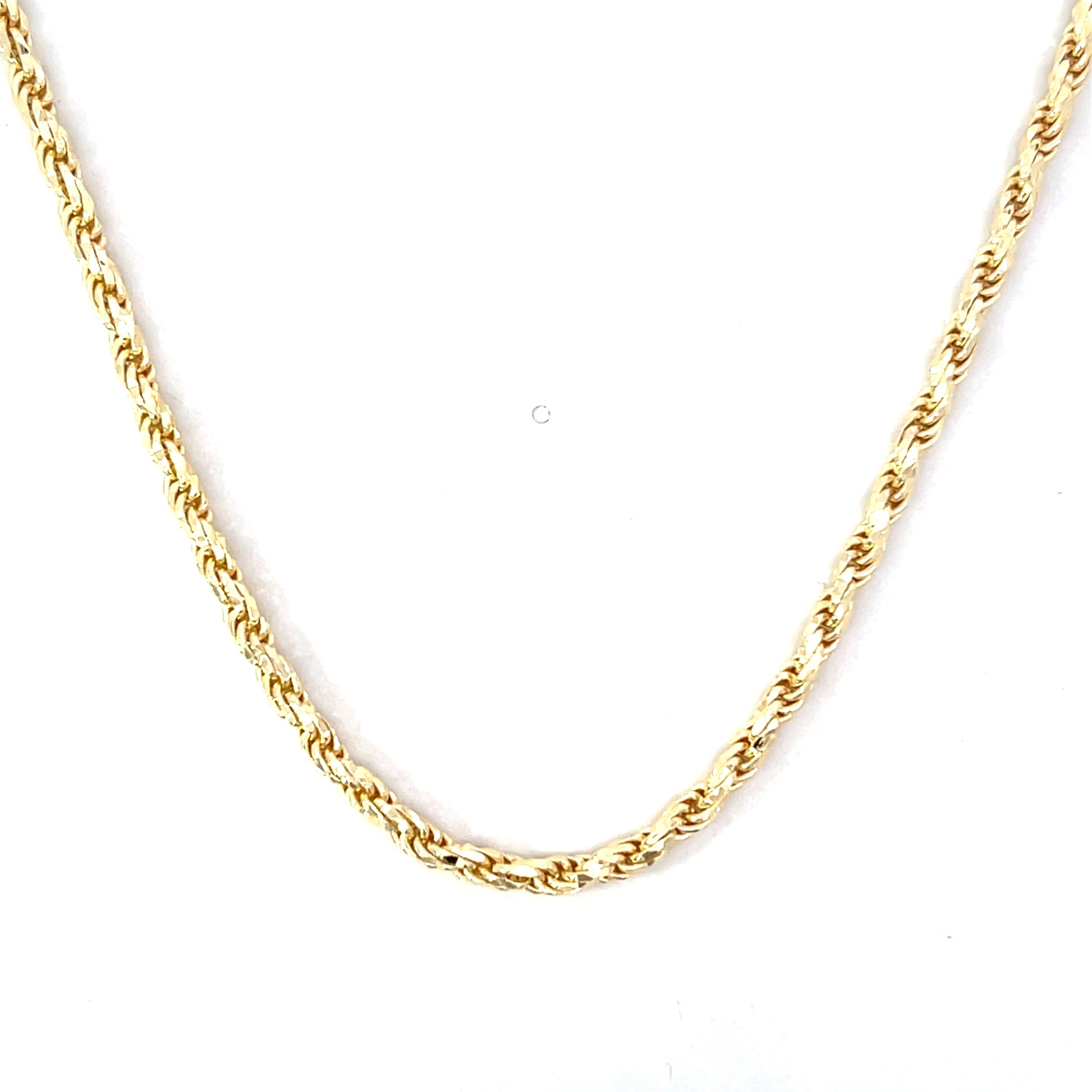 This 20-inch chain features a 3.6mm rope design, crafted from sterling silver and finished with a 14k gold plating for a refined look.