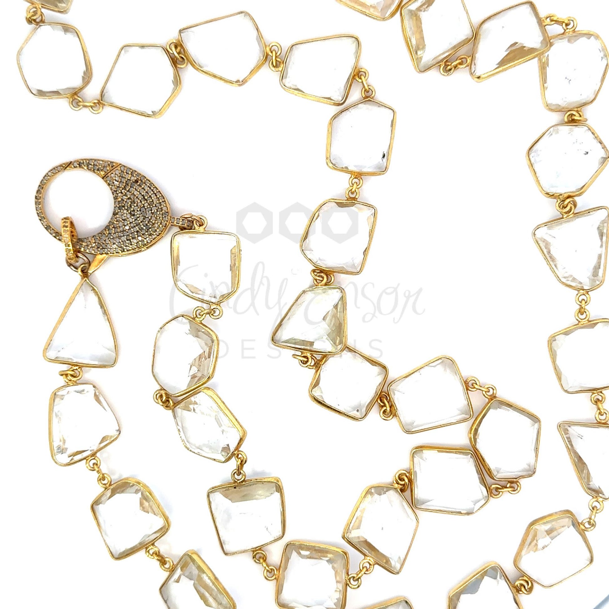 Gold Vermeil Larger Crystal Necklace with Pave Diamond Lobster