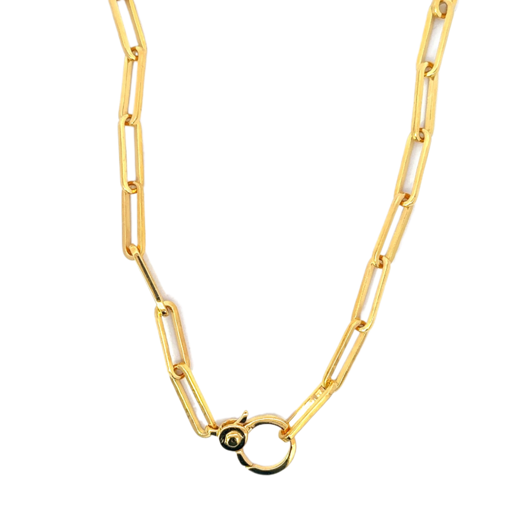 Gold Vermeil Paper Clip Necklace with Circle Lobster Clasp