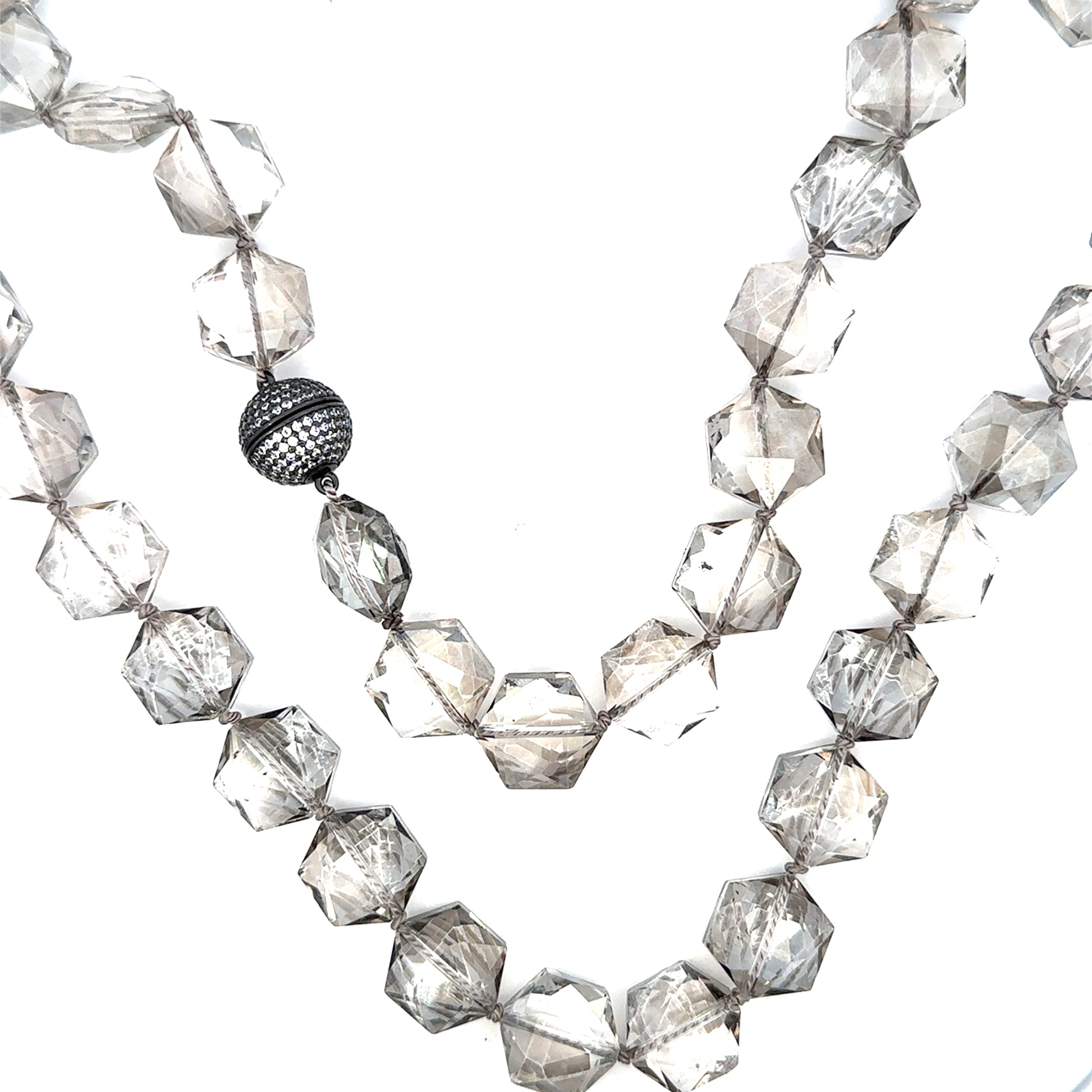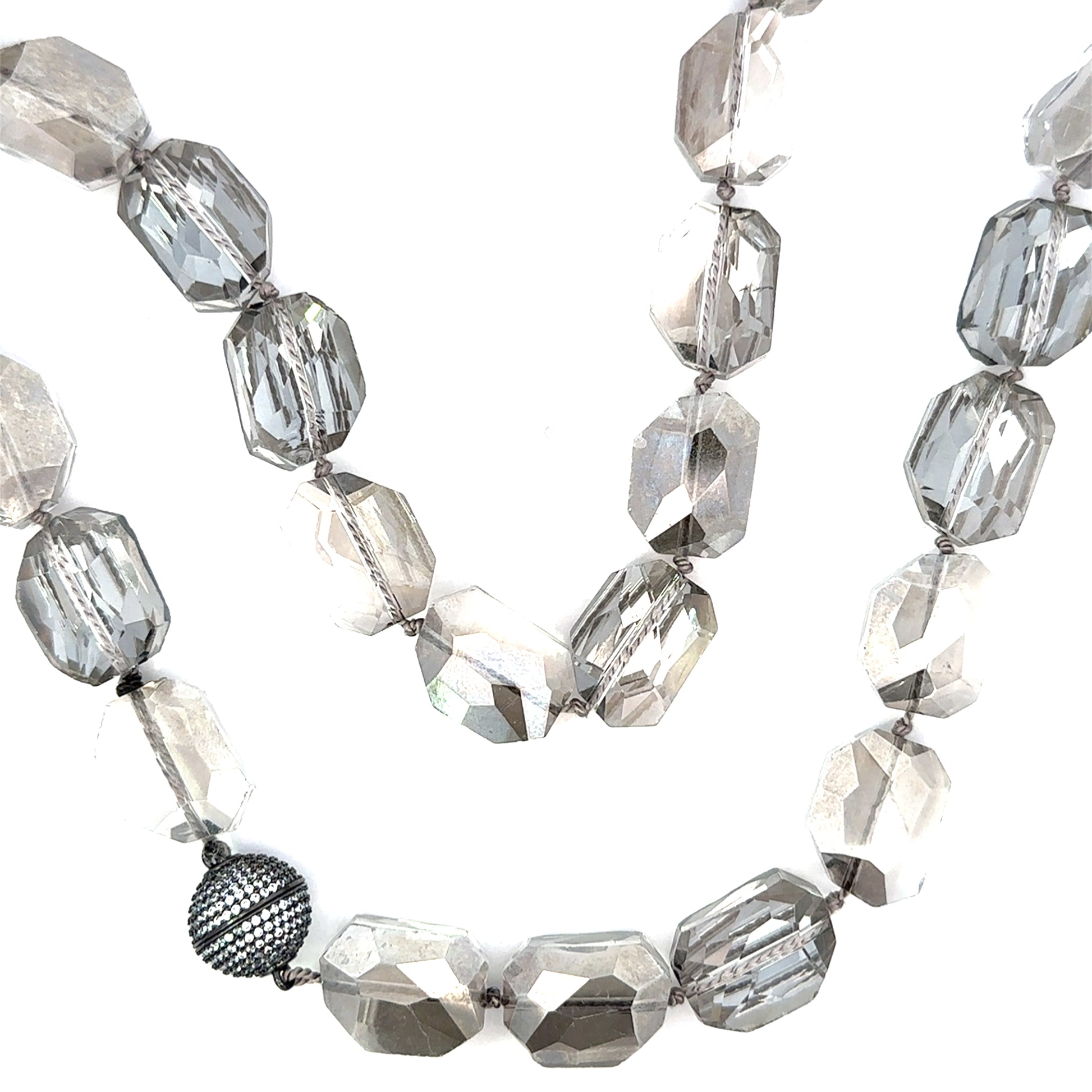 Hand Knotted Grey Crystal Necklace with Silver Magnetic Closure