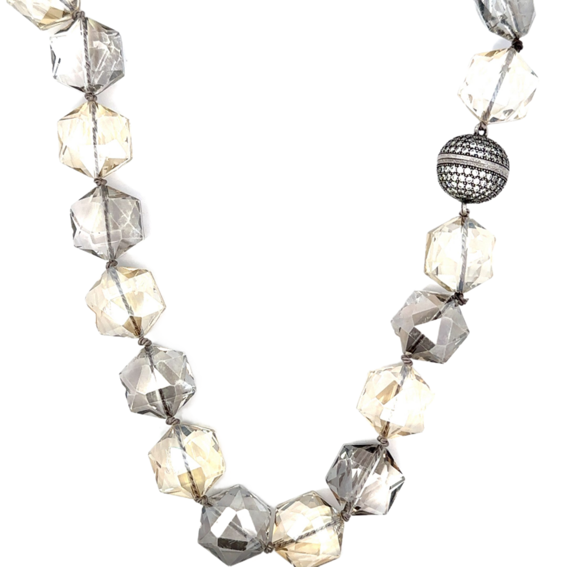 Hand Knotted Two Tone Crystal Necklace with Silver Plated Magnetic Closure