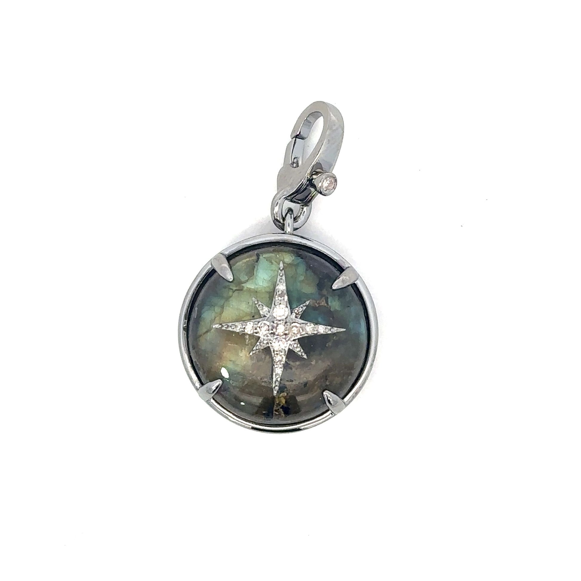 This 20mm pendant features sterling silver paired with labradorite, accented by 0.14ct of pave-set diamonds for a refined, expert-crafted look.
