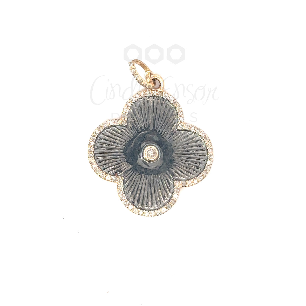 Large Mixed Metal Clover Pendant with Bezeled Diamond and Pave Detail