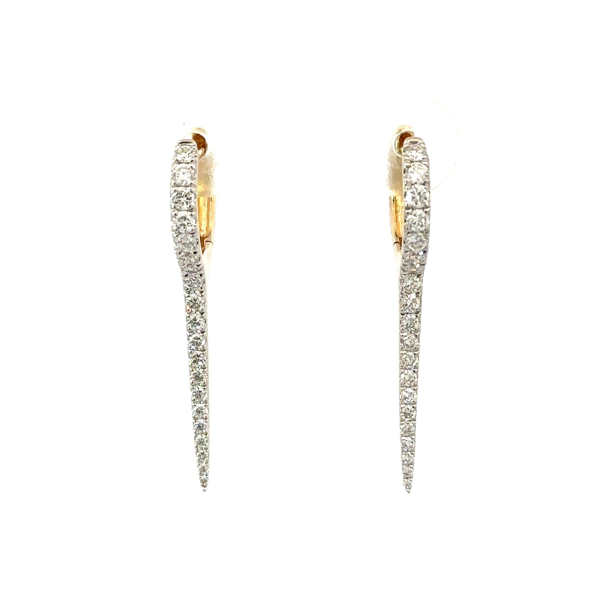 Crafted from 14K yellow gold, this Medium Diamond Spike Huggie features 0.55 carats of pave diamonds. The total length measures 29.2mm, with a huggie size of 11mm in height and 12.5mm in width, and a thickness of 2.1mm.