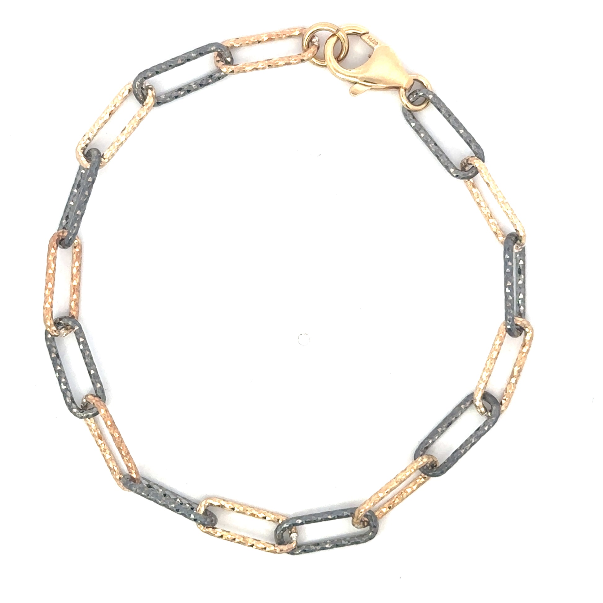 Medium Mixed Metal Diamond Cut Paper Clip Bracelet