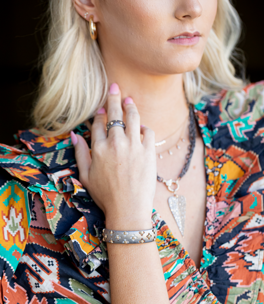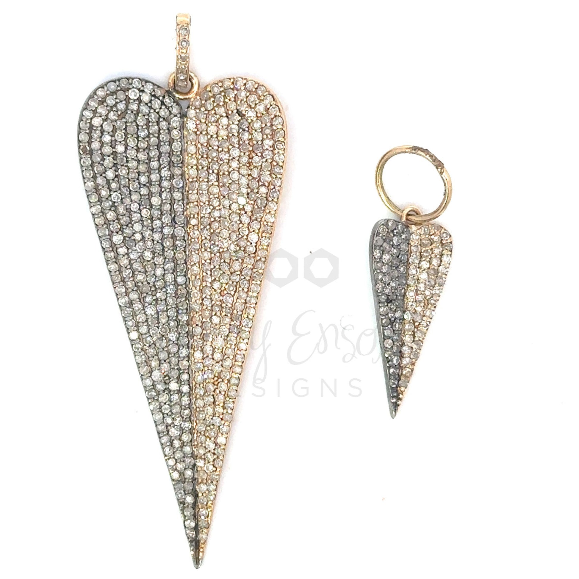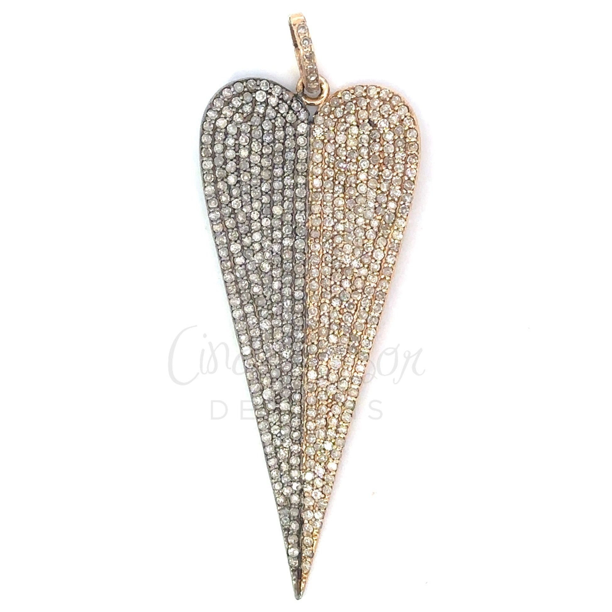 Mixed Metal Elongated Pave Diamond Heart Pendant