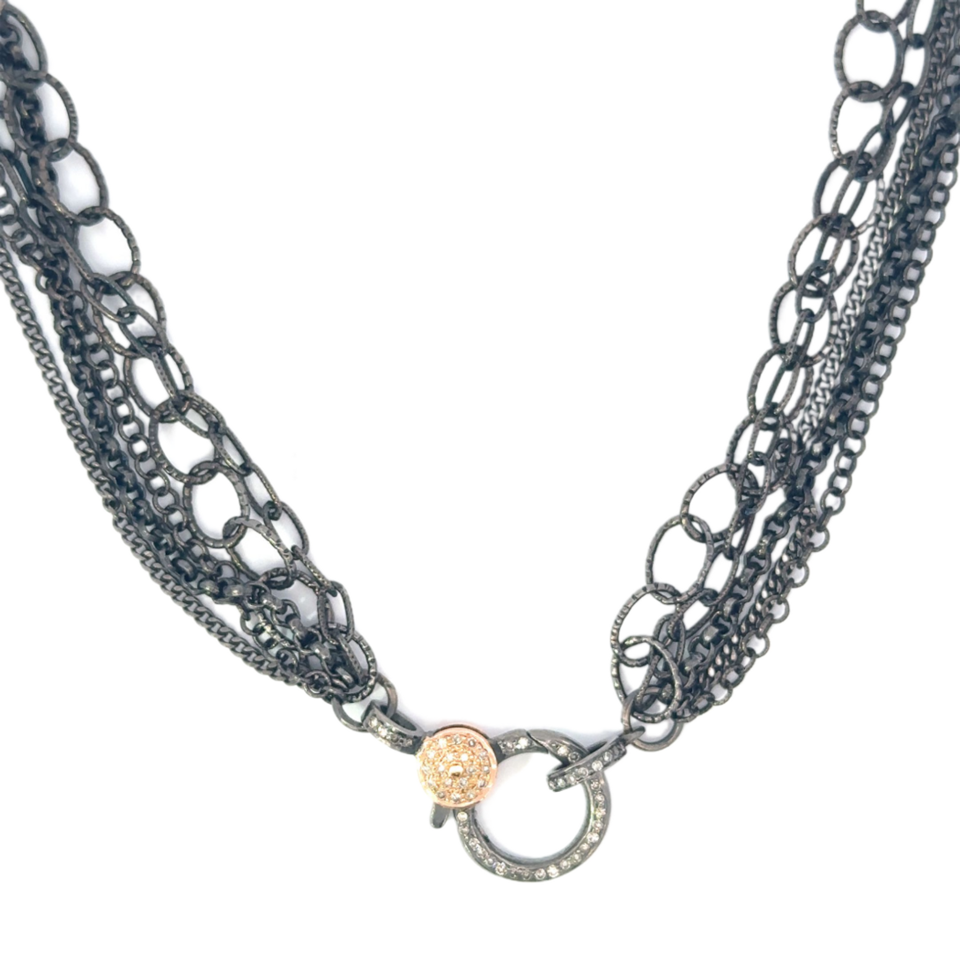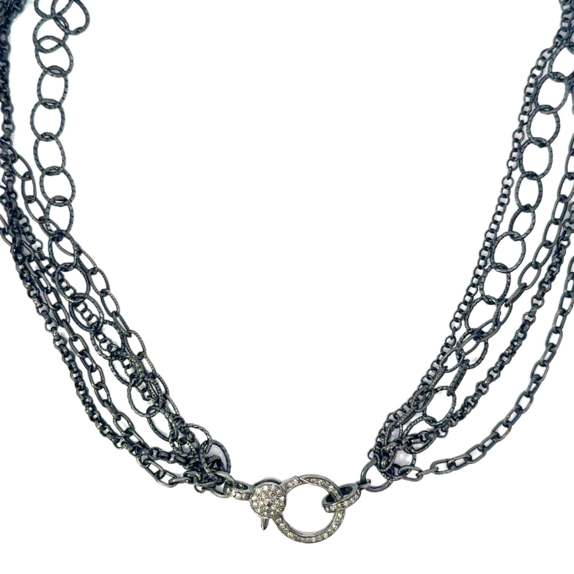 Multi Chain Necklace with Pave Diamond Lobster