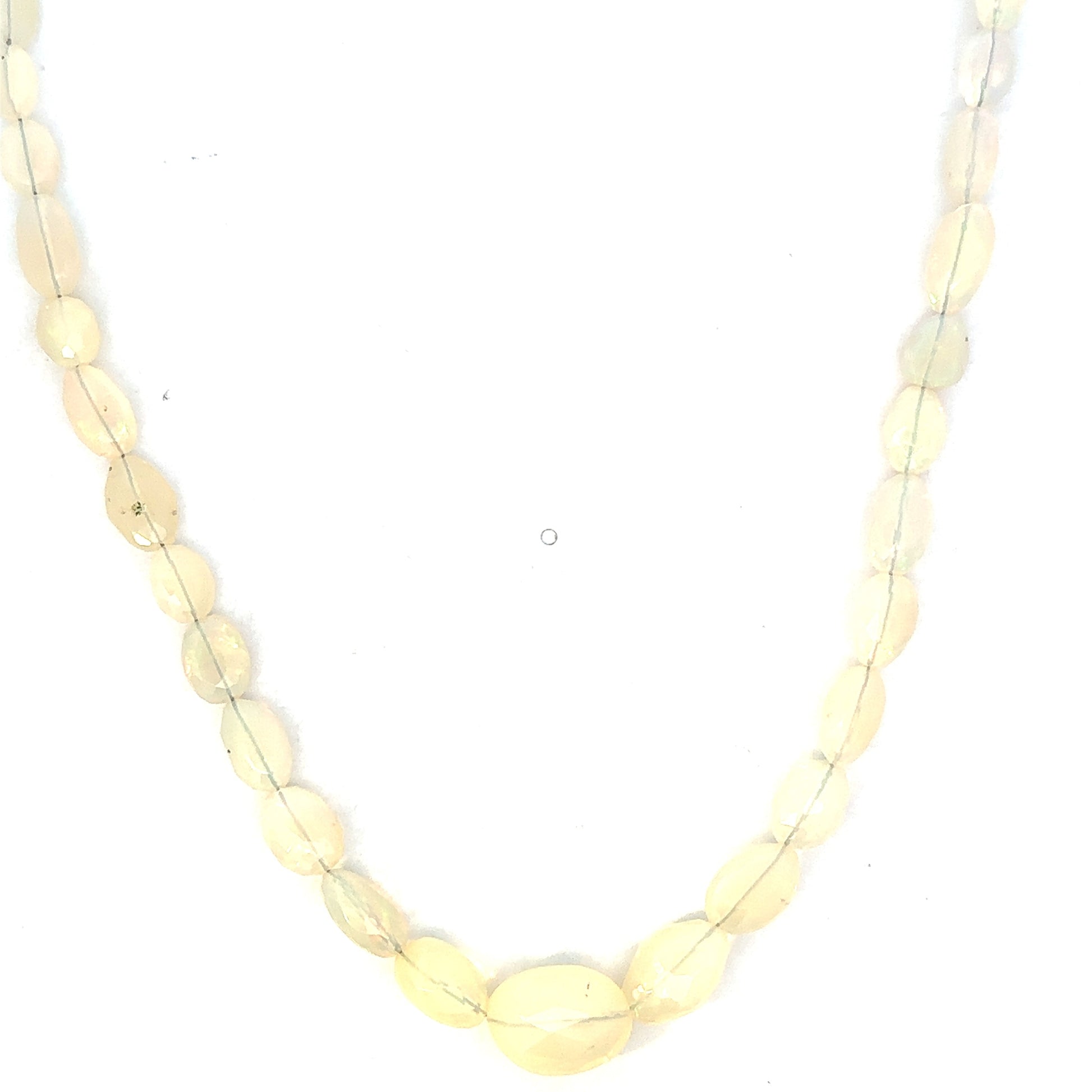 This necklace measures 16" in length, featuring a largest opal sized at 13.5mm long by 10mm wide and a smallest opal measuring 6.8mm long by 5mm wide.