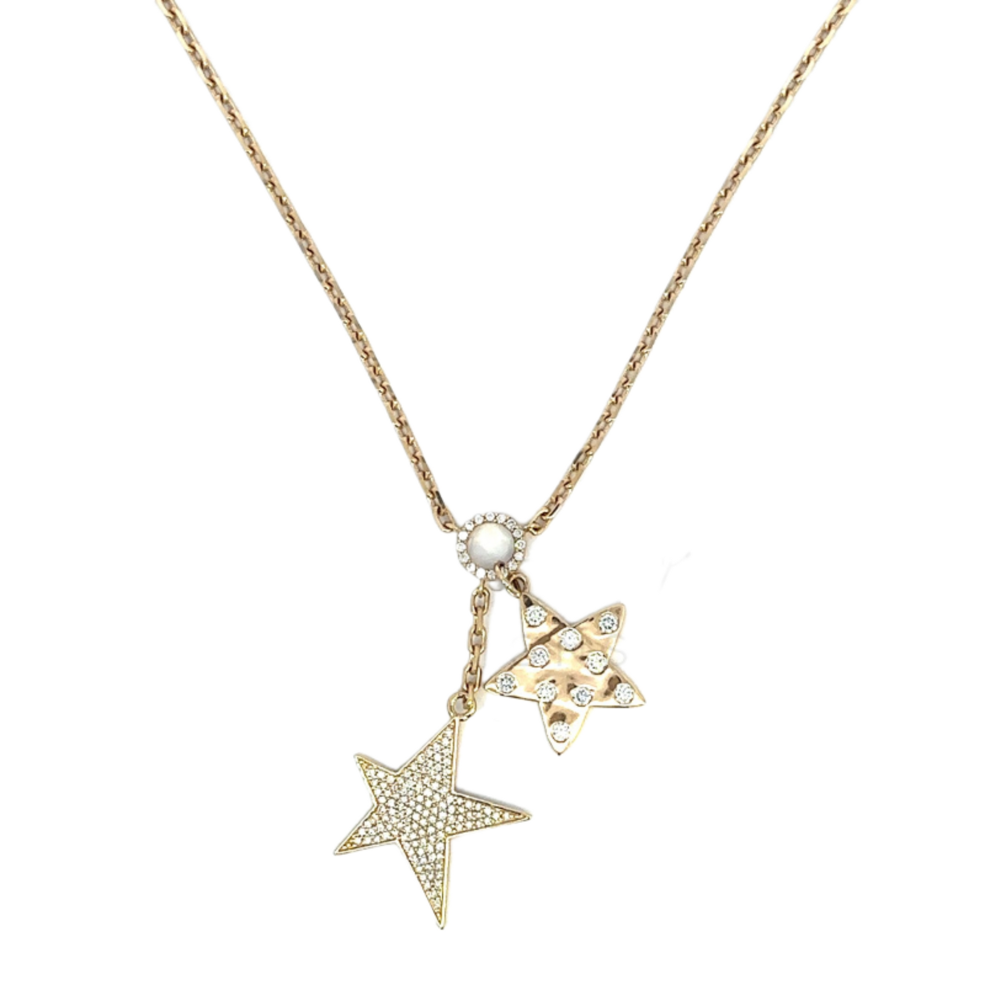 Pave and Bezeled Diamond Double Star Drop Necklace