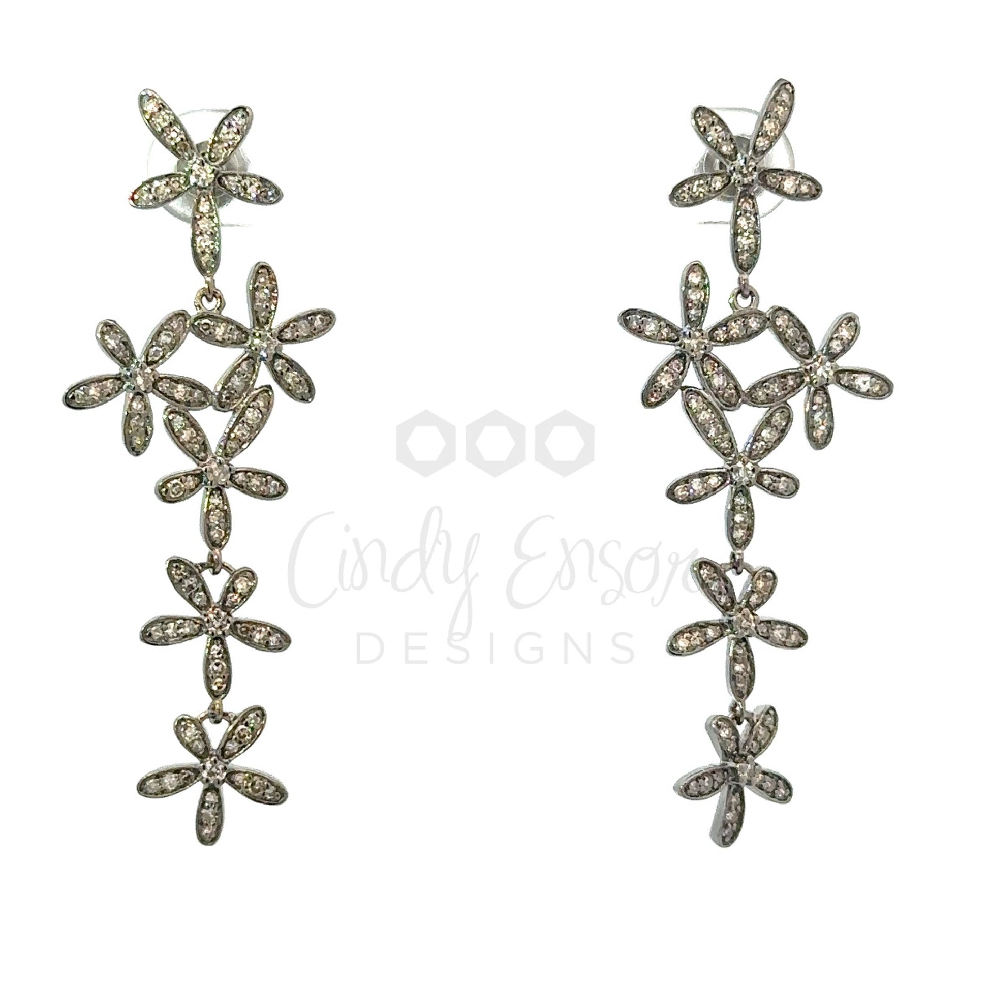 Pave Diamond 5 Petal Multi Flower Drop Earring