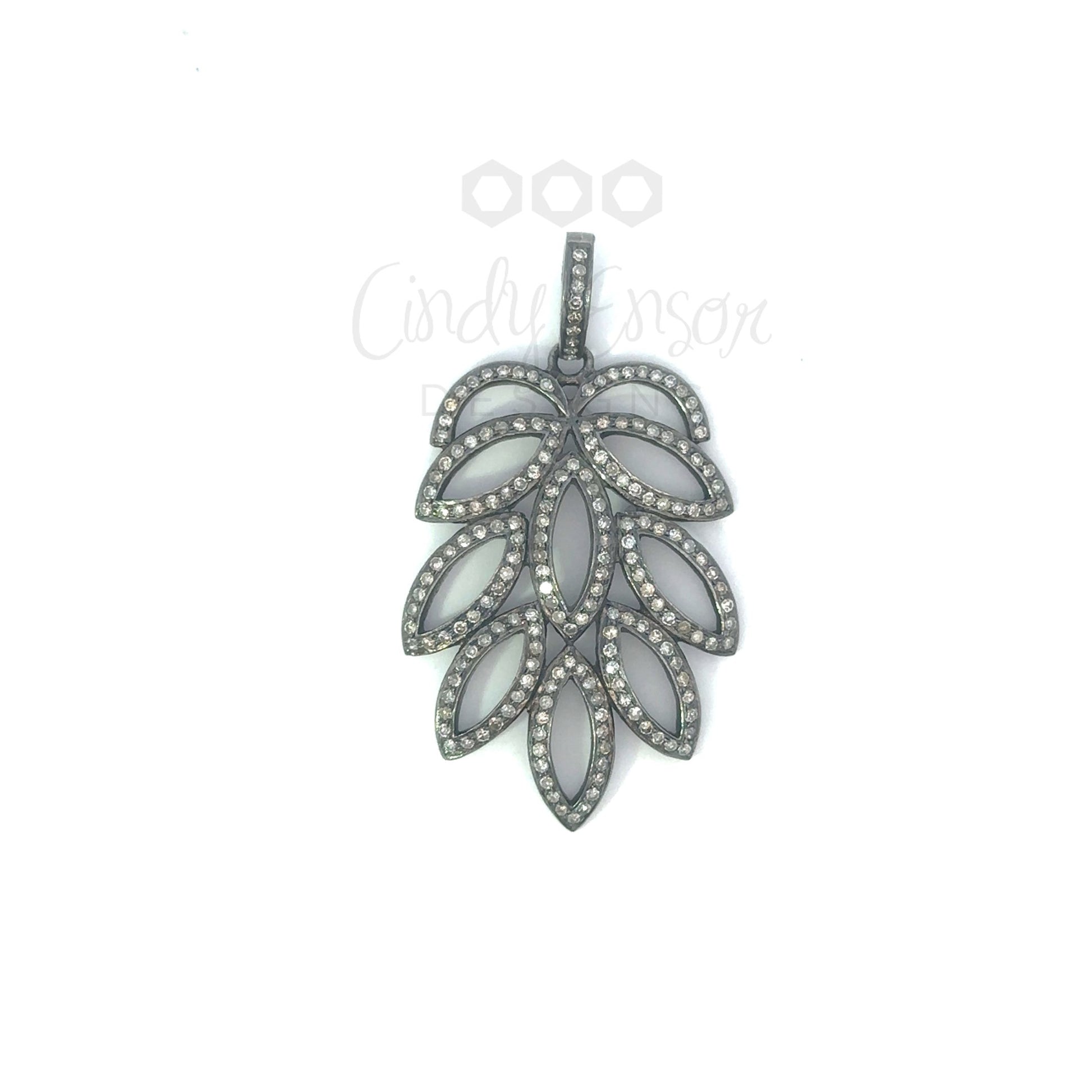 Sterling Silver Pave Diamond Flower Leaf Pendant