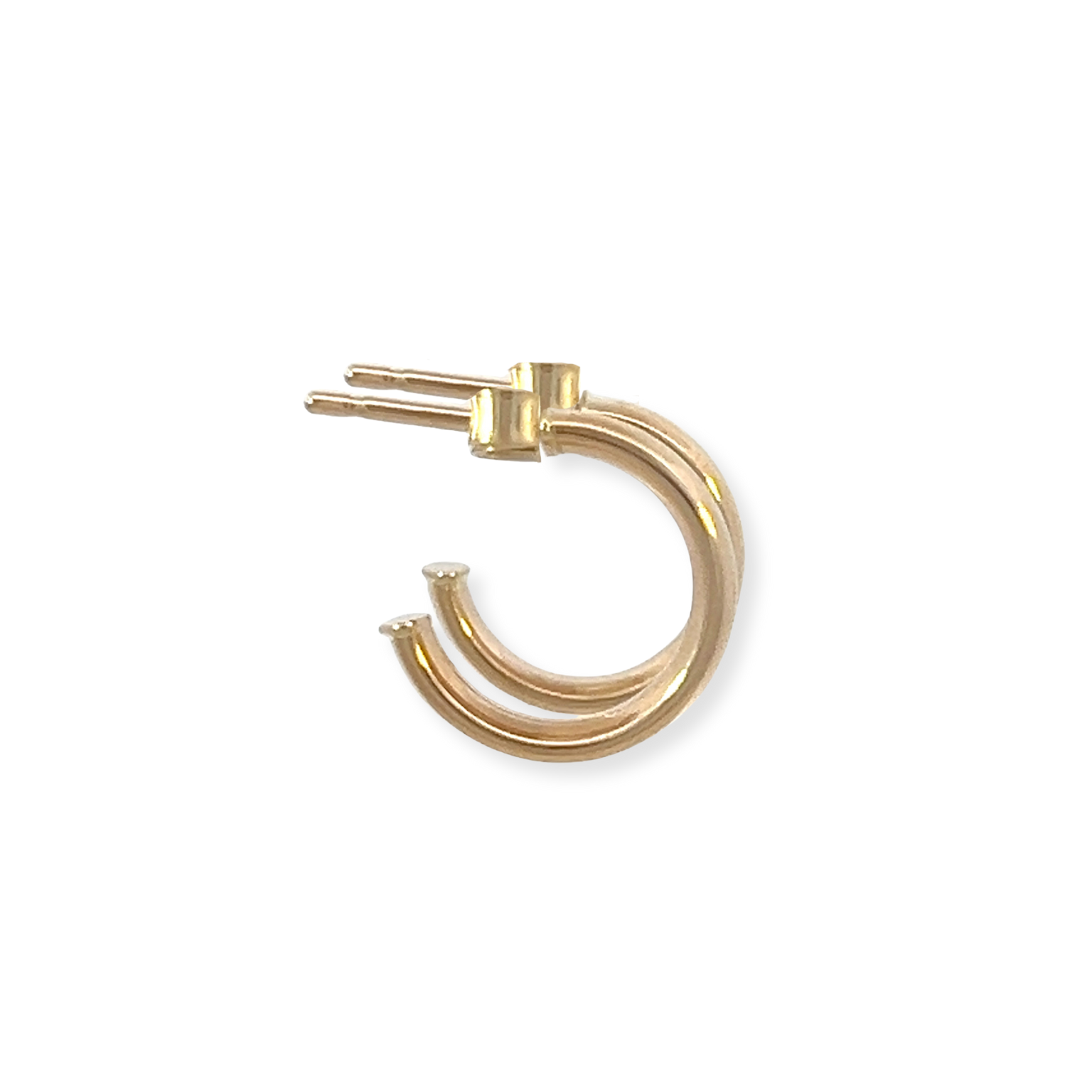 14K yellow gold hollow mini hoop earrings with butterfly backs.