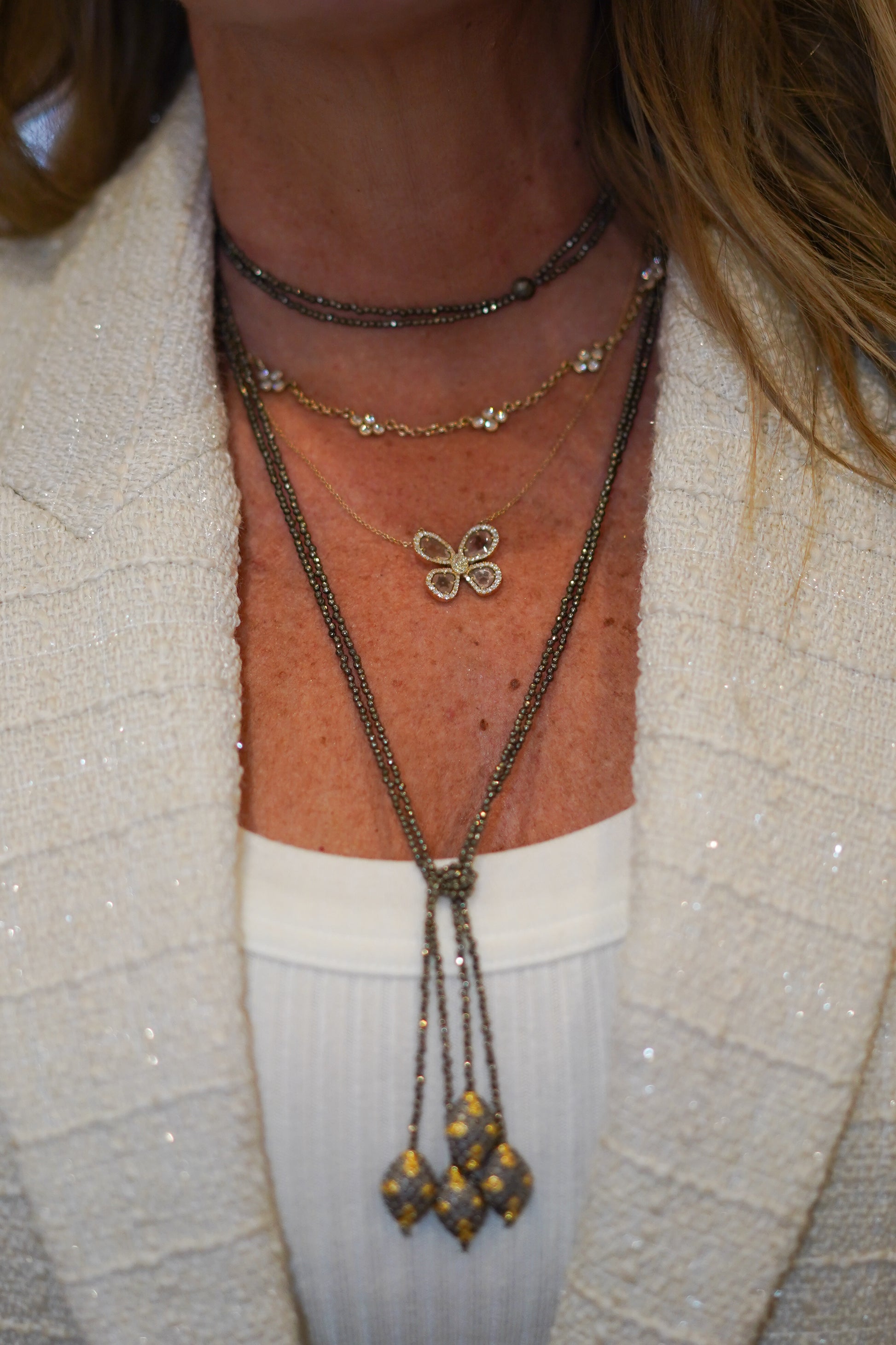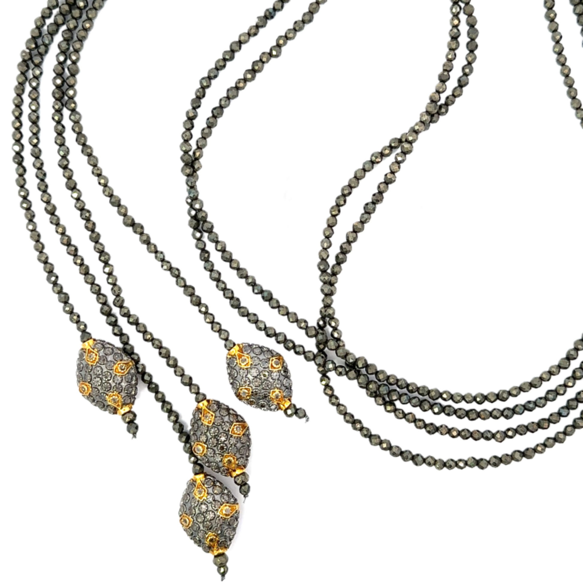 Pyrite Double Strand Lariat Necklace with Diamond Accents