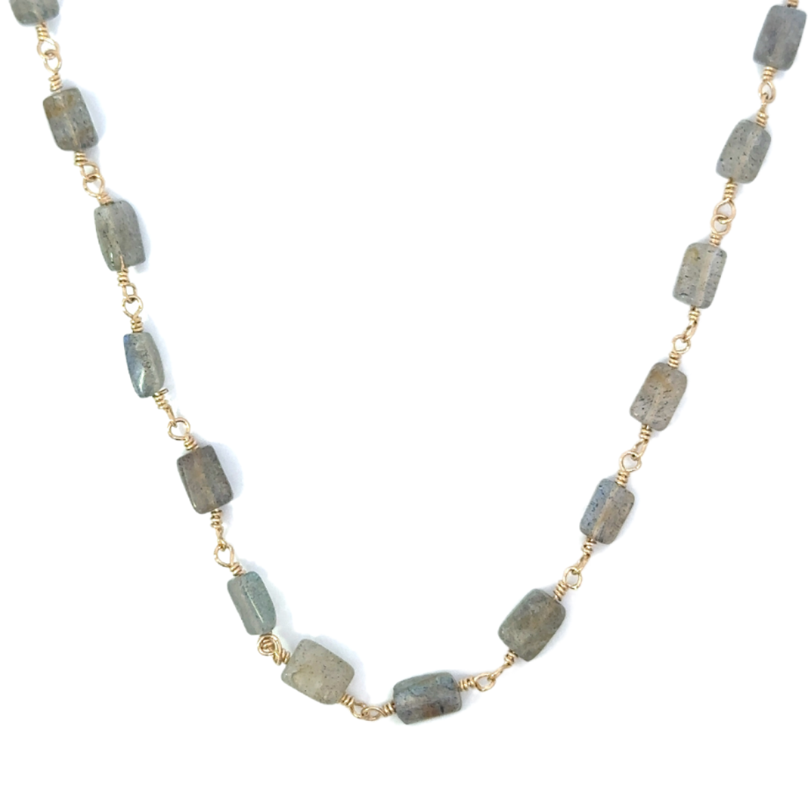 Short Gold Filled Rectangle Labradorite Chain Necklace