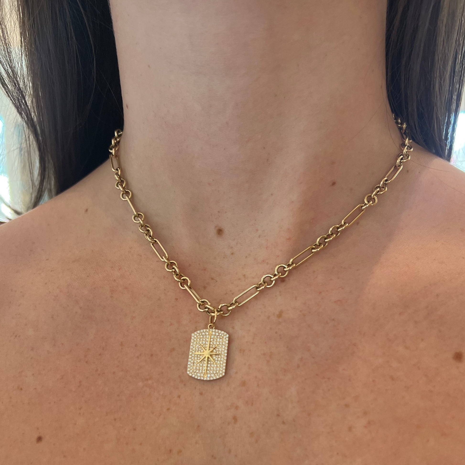 This 16-inch chain features vintage-inspired paper clip links crafted from 14k yellow gold, weighing 6.13 grams.