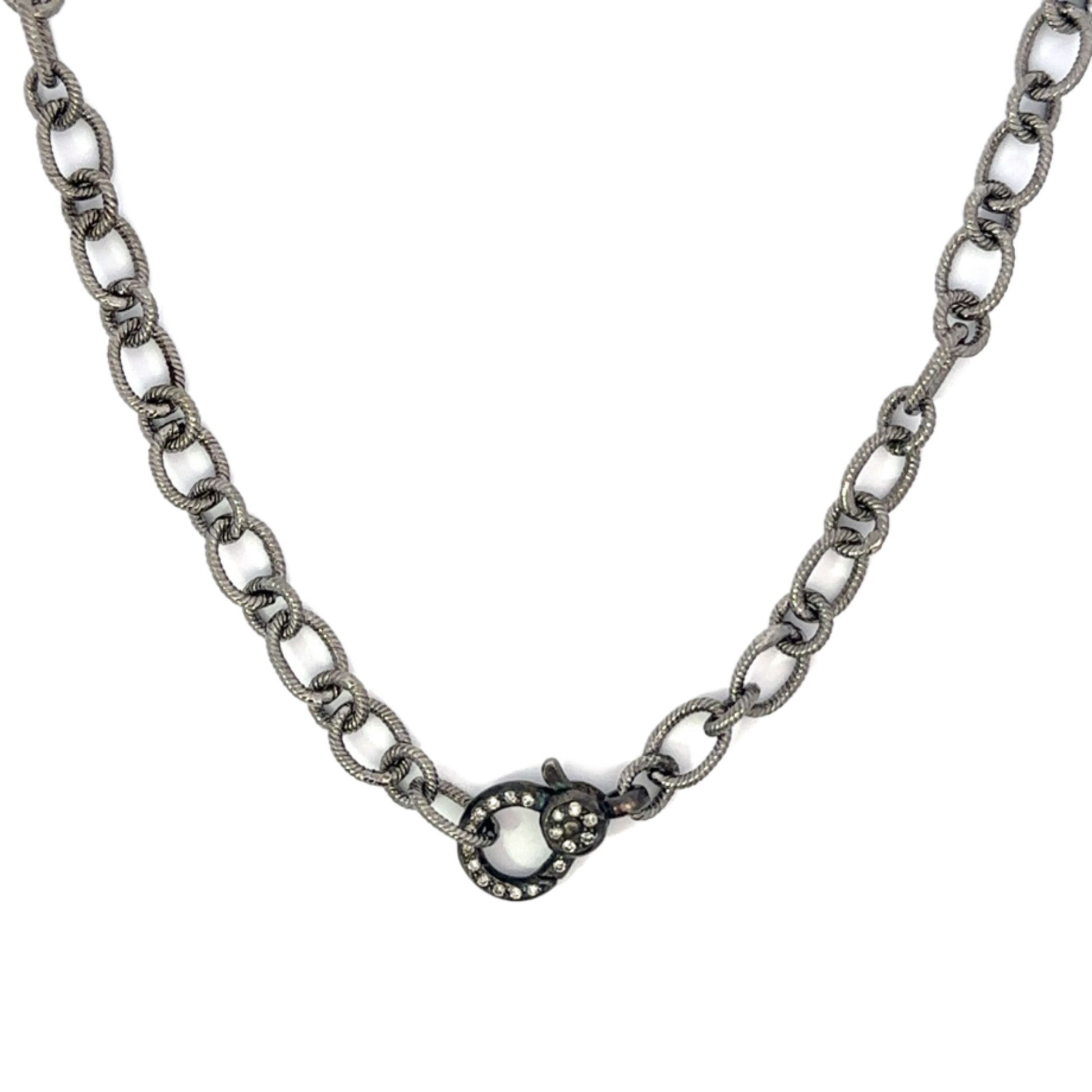 Short Sterling Oval Link Necklace with Oxidized Small Pave Lobster