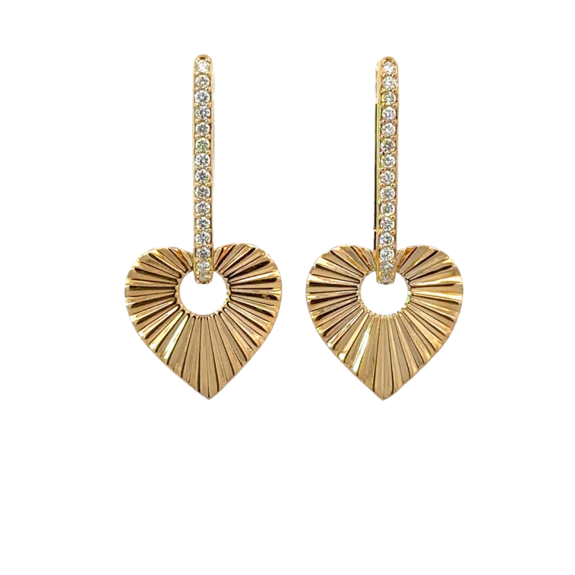 Yellow Gold Single Sided Diamond Paper Clip Earring with Fluted Heart Charm