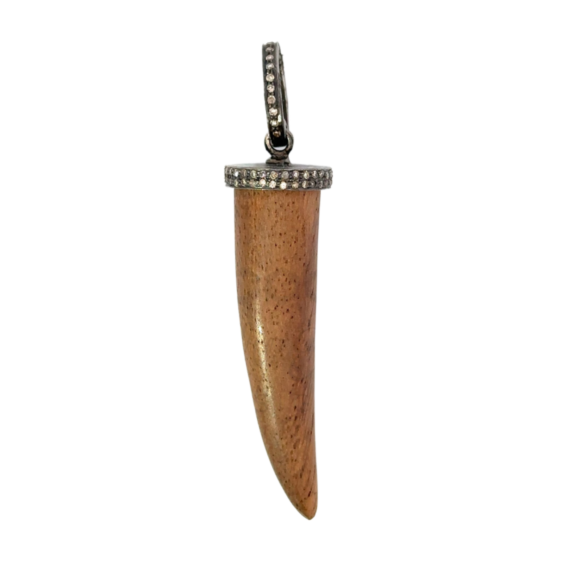 Small Wooden Horn Pendant with Sterling Silver Diamond Bail