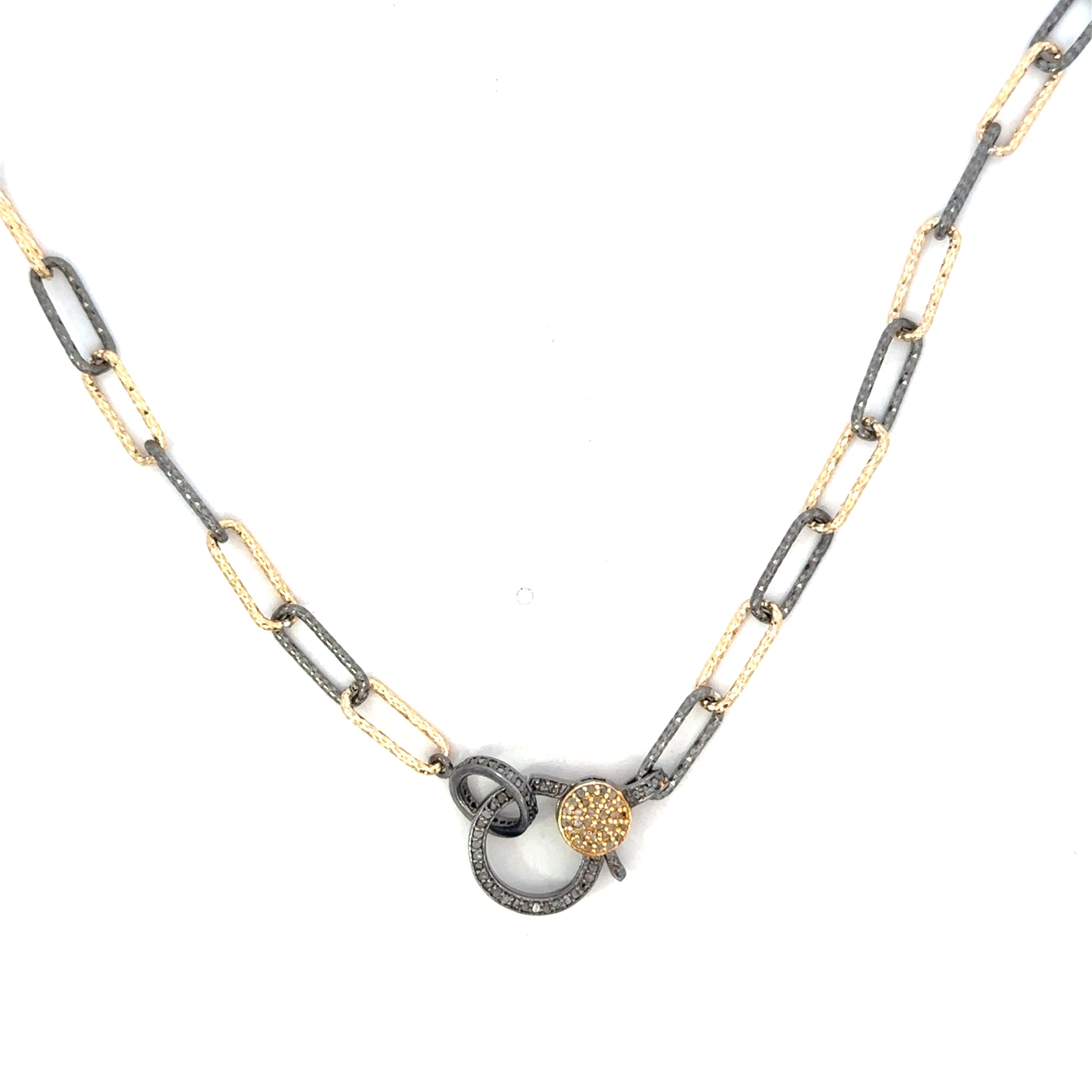 Small Yellow GF and Sterling Diamond Cut Paper Clip Chain Necklace with Mixed Metal Lobster