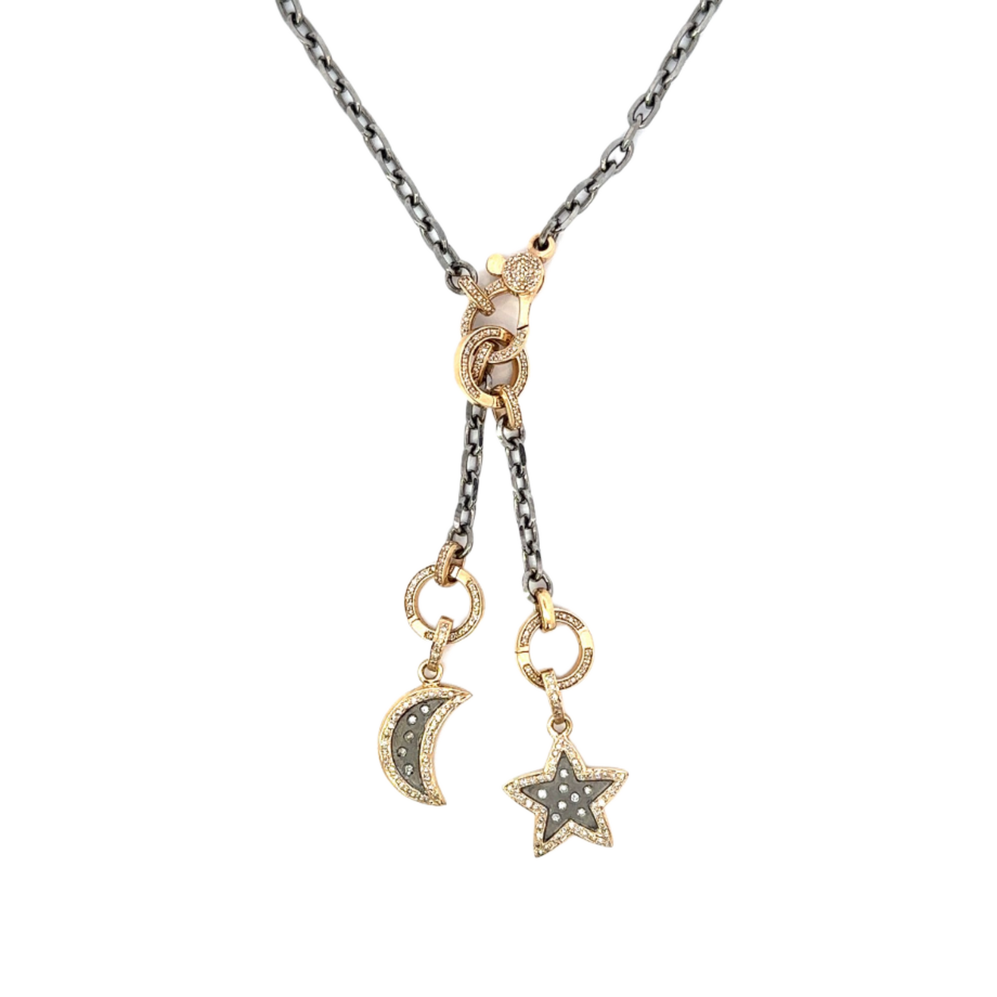 Sterling Chain with Triple Yellow Gold Pave Diamond Bail