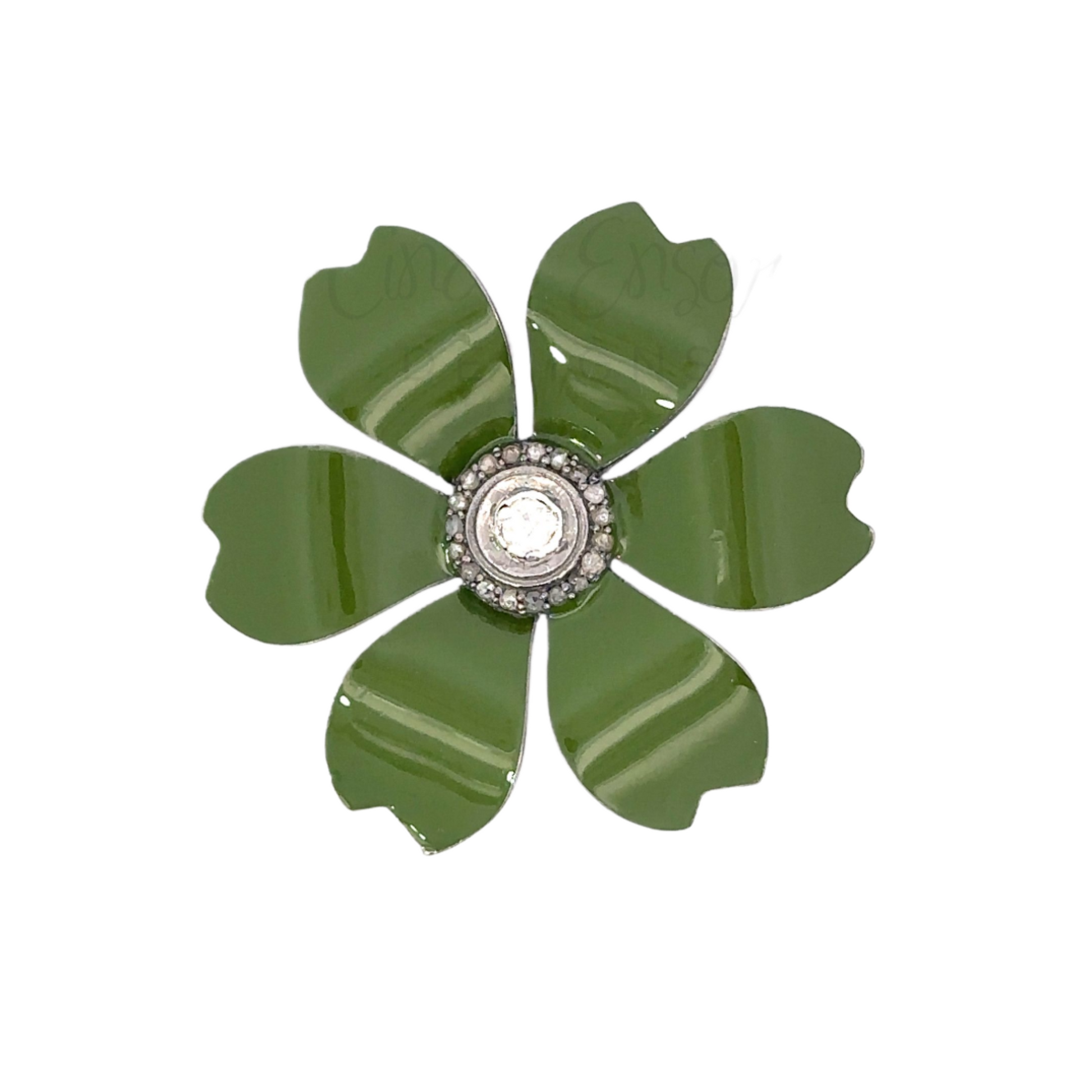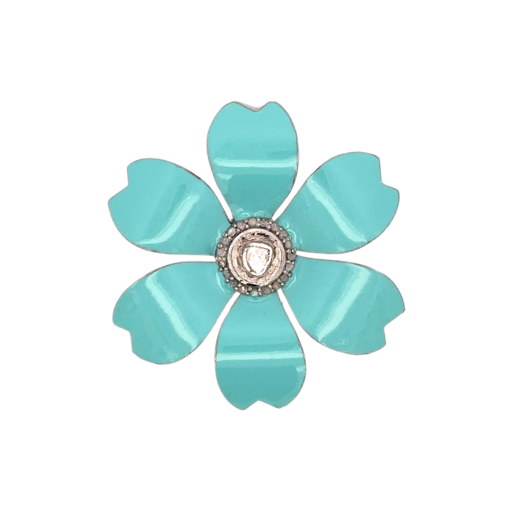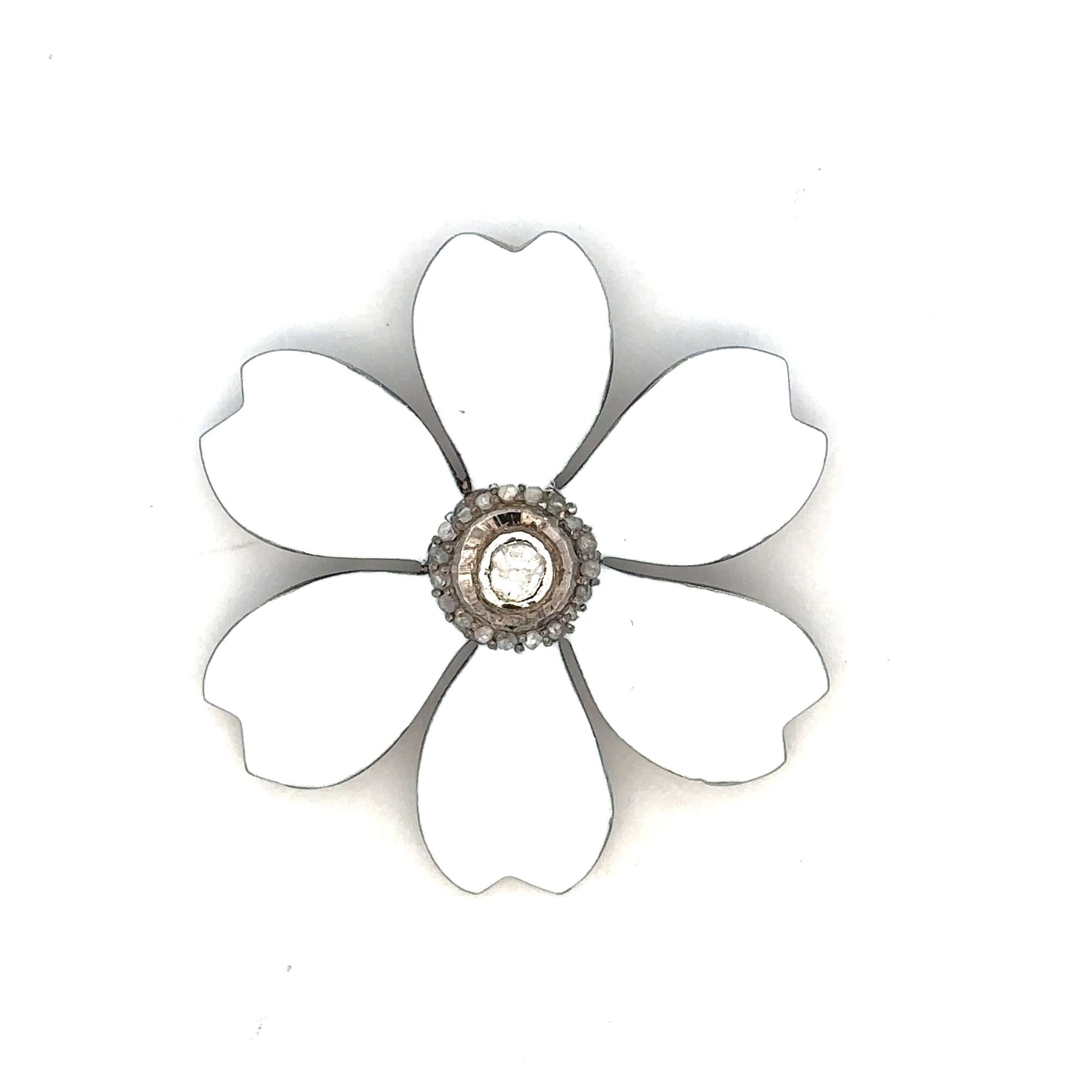 Sterling Enamel Flower Pendant with Rose Cut Diamond Center