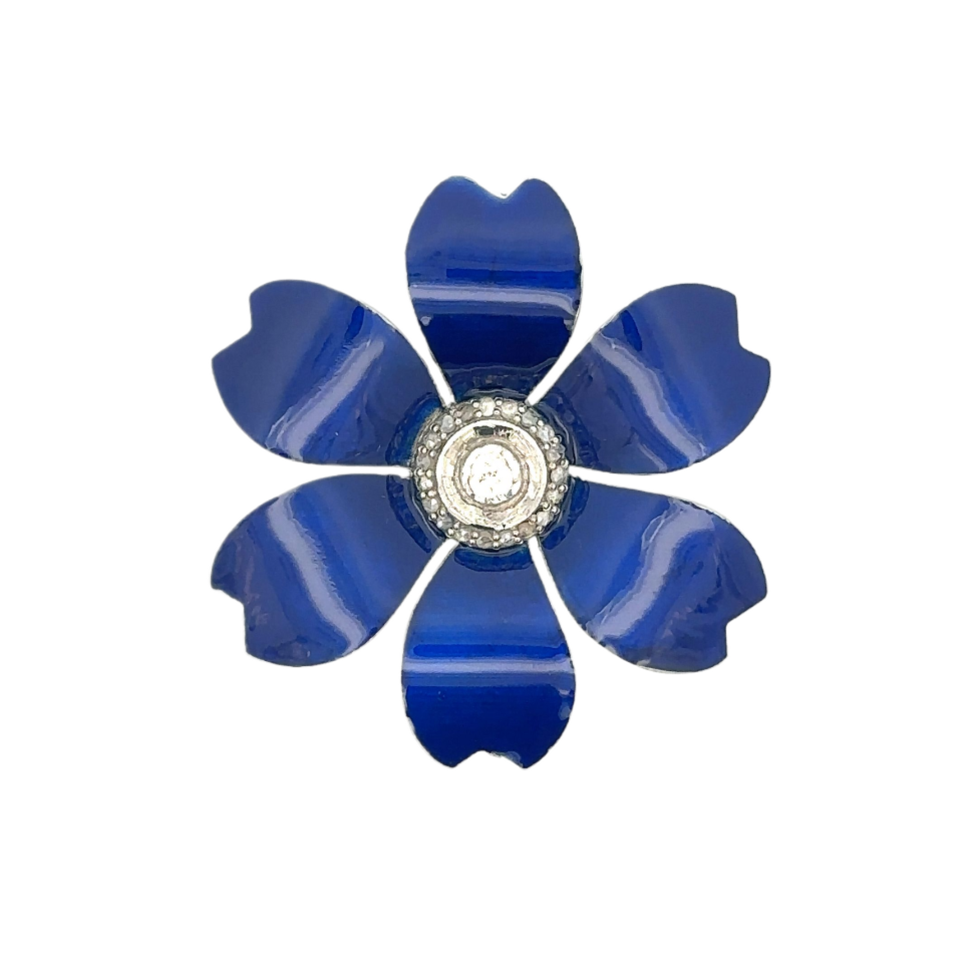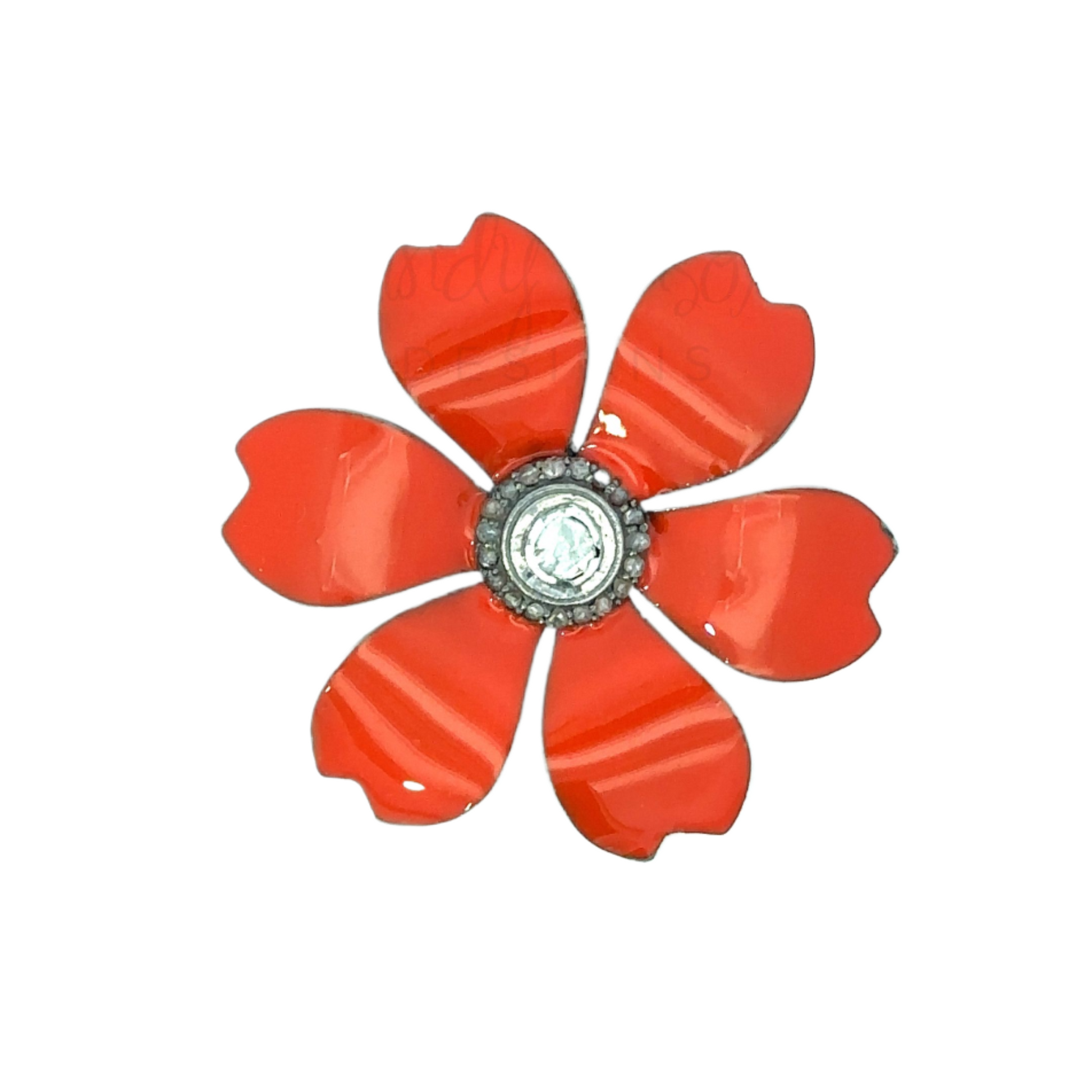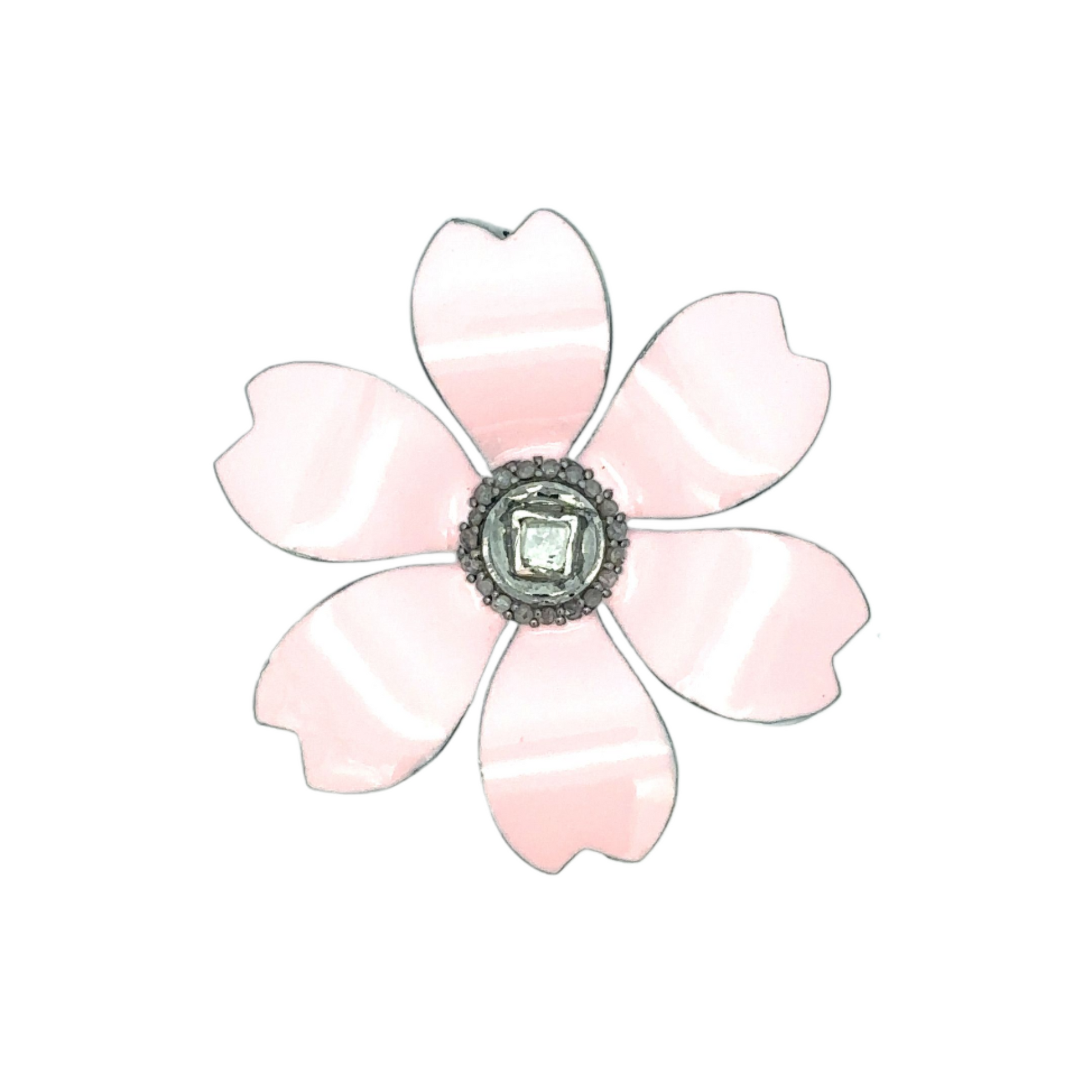 Sterling Enamel Flower Pendant with Rose Cut Diamond Center