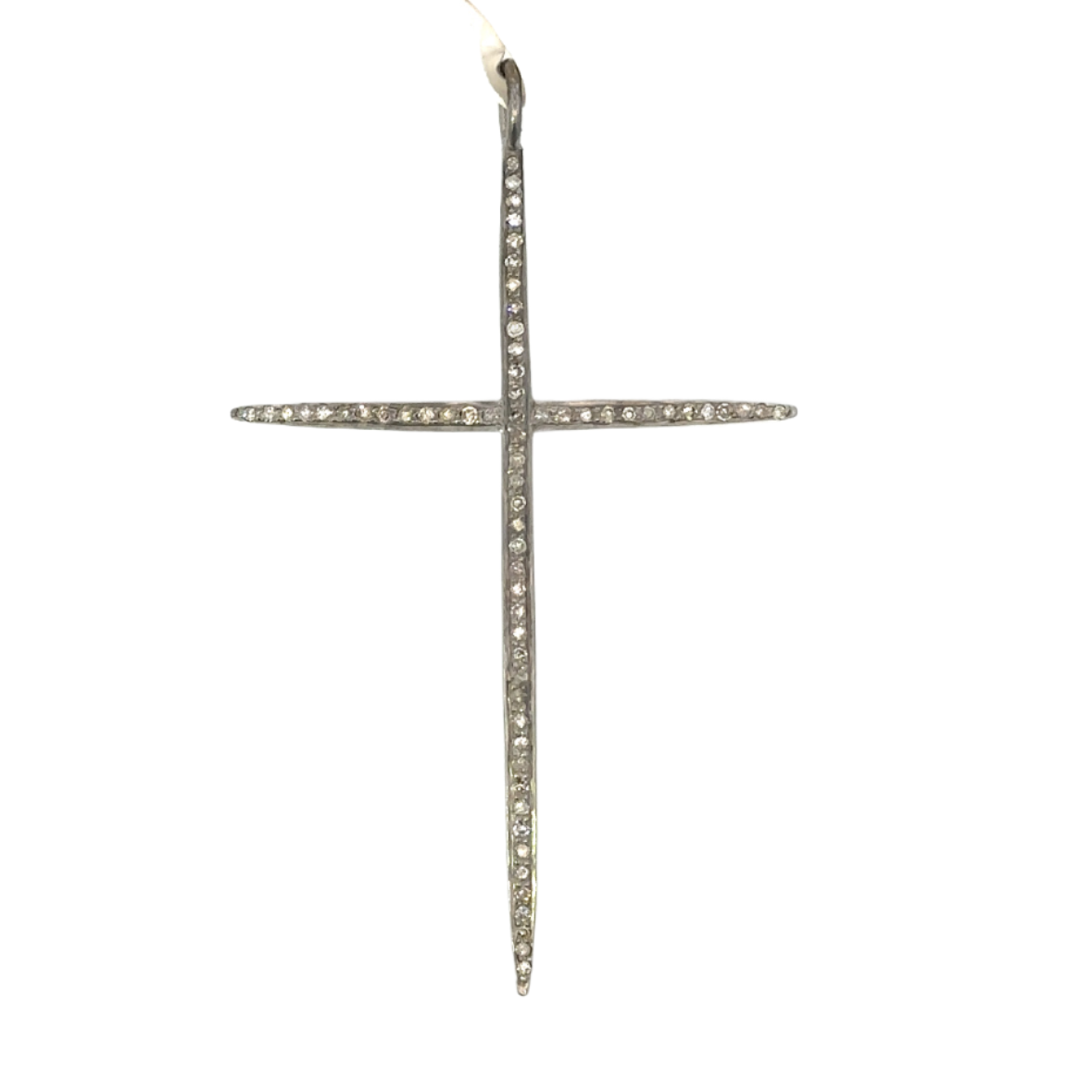 Sterling Pave Diamond Thin Cross Pendant