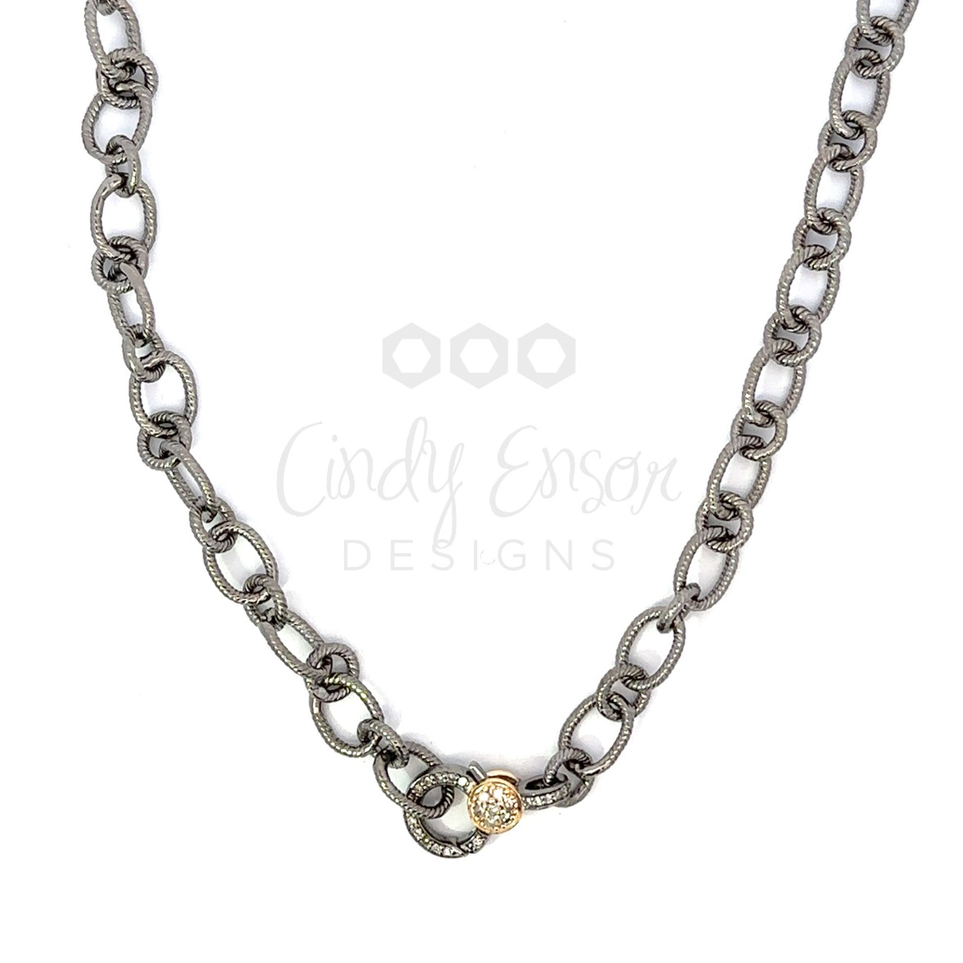 Sterling Silver Alternating Oval and Circle Chain with Small Pave Diamond Lobster