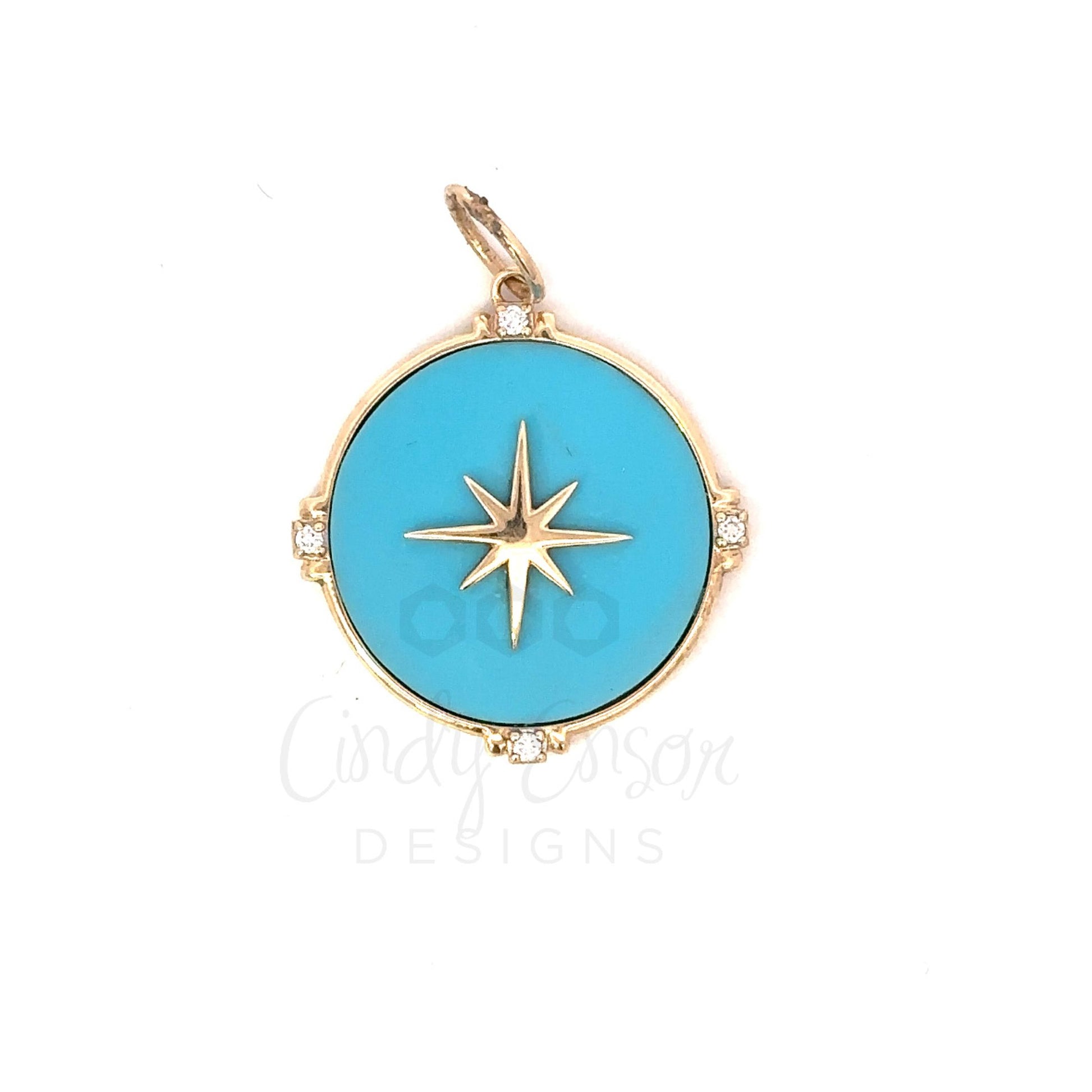 Turquoise Disc Pendant with Center Starburst and Diamond Accents