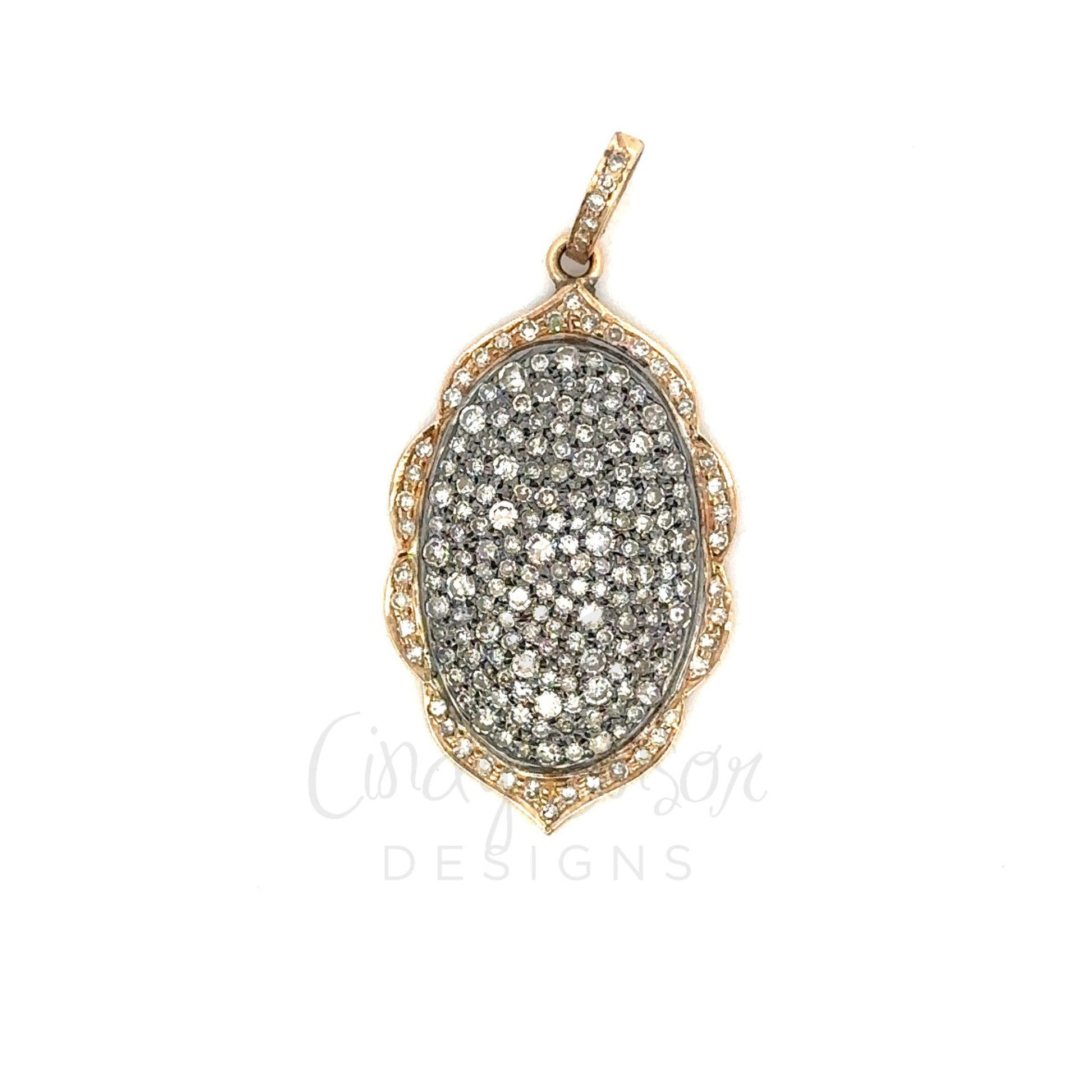 Two Tone Yellow Gold Pave Oval Pendant