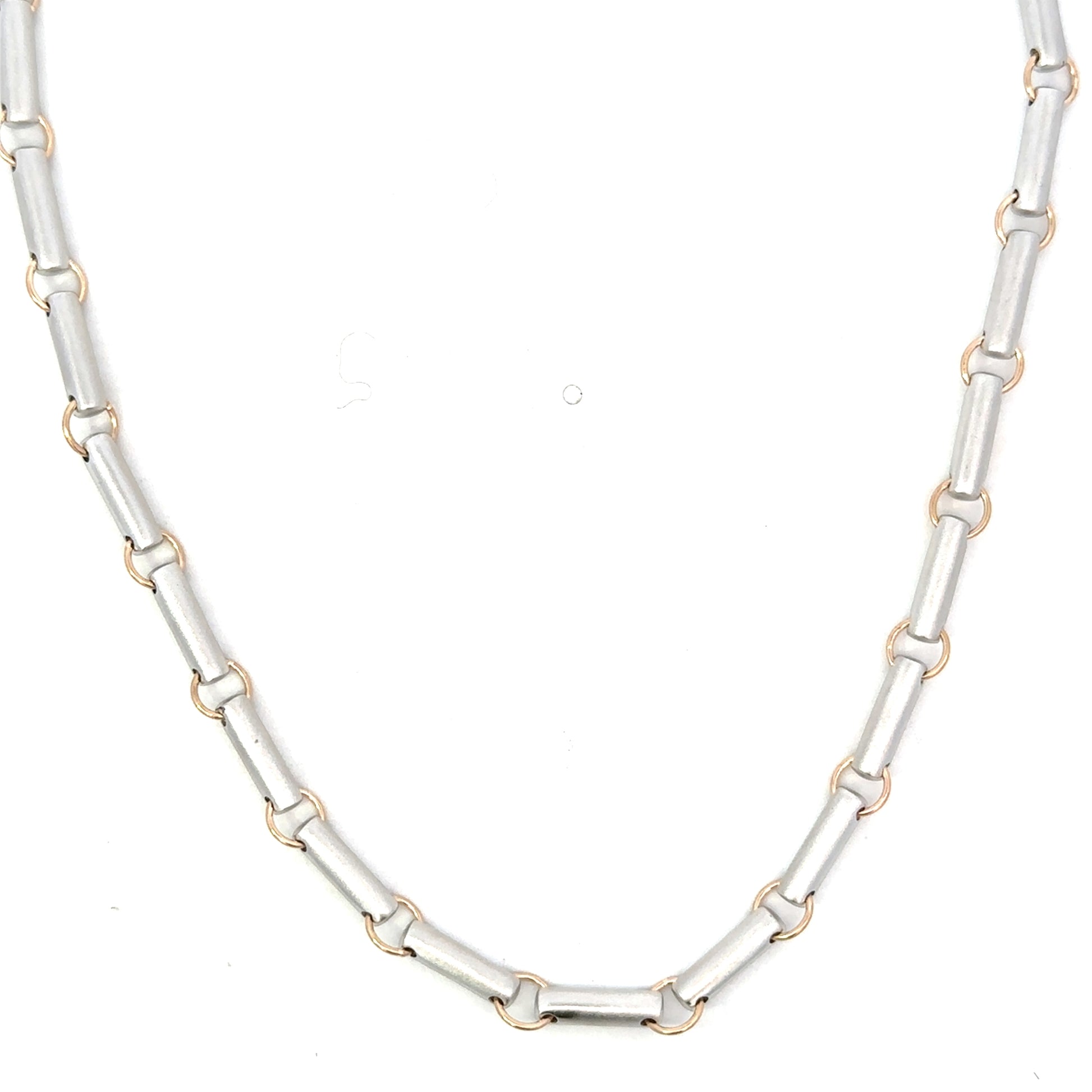 Unoxidized Silver and YG Cylinder Link Chain