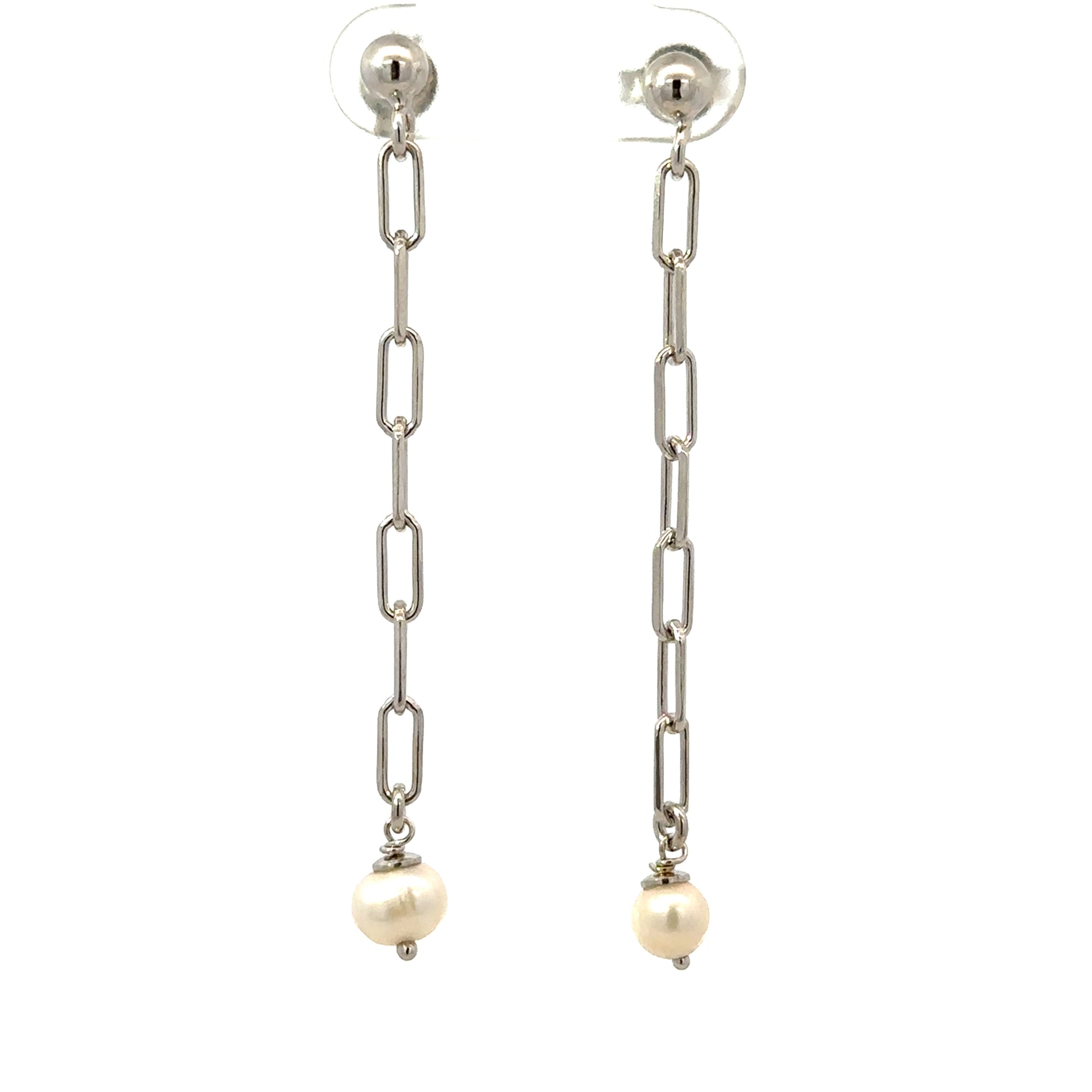 Unoxidized Silver Pearl Chain Straight Drop Earrings