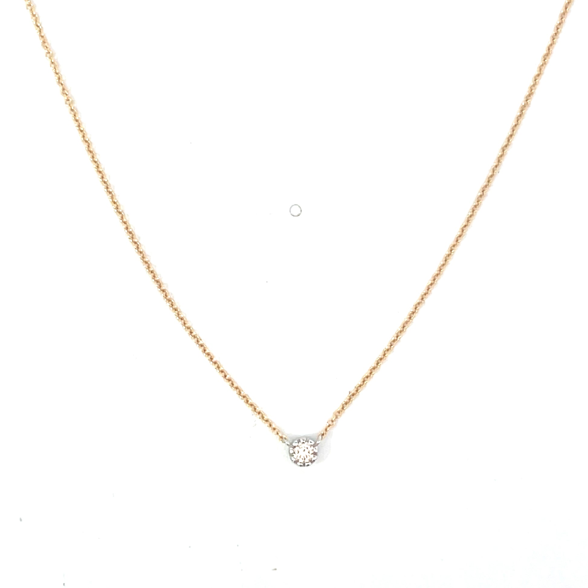 Unoxidized Sterling and YG Single Bezeled Milgrain Diamond Necklace