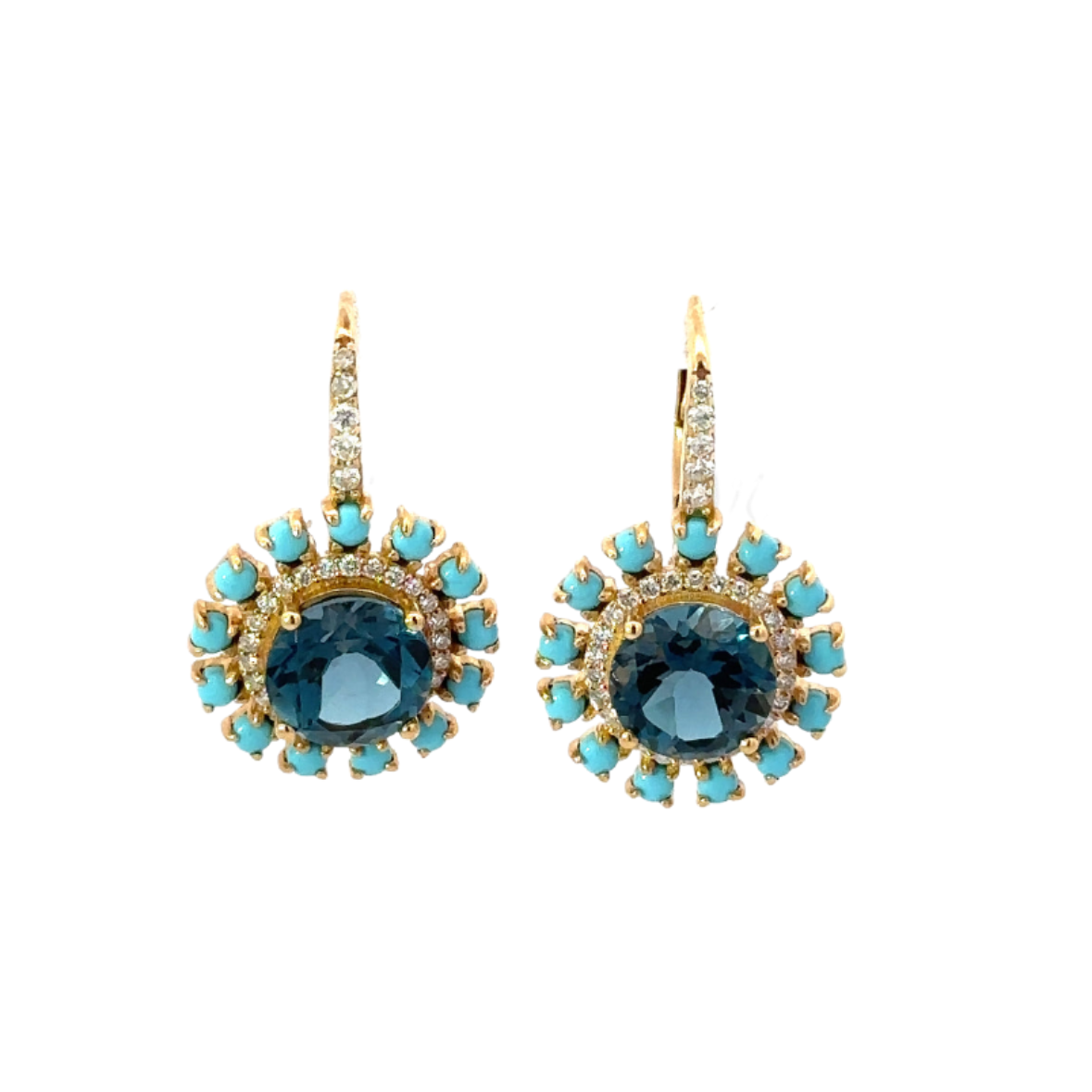 Round Blue Topaz Huggie with Turquoise and Diamond Accents