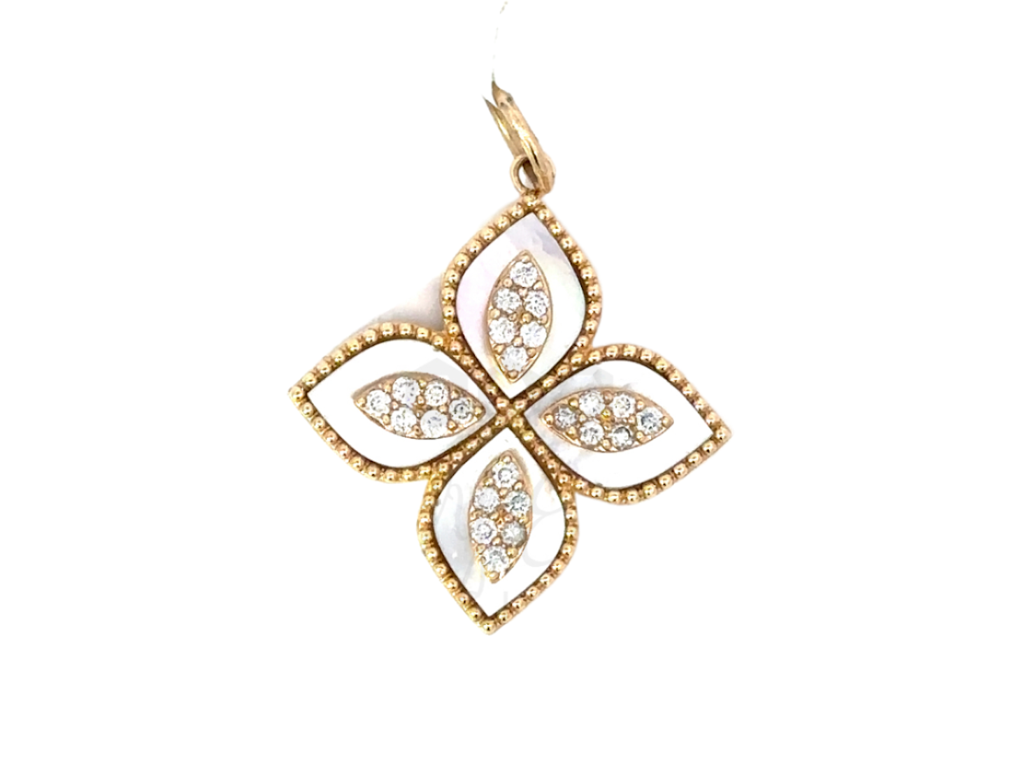 White Mother of Pearl Cross Shaped Pendant with Pave Diamond Accents