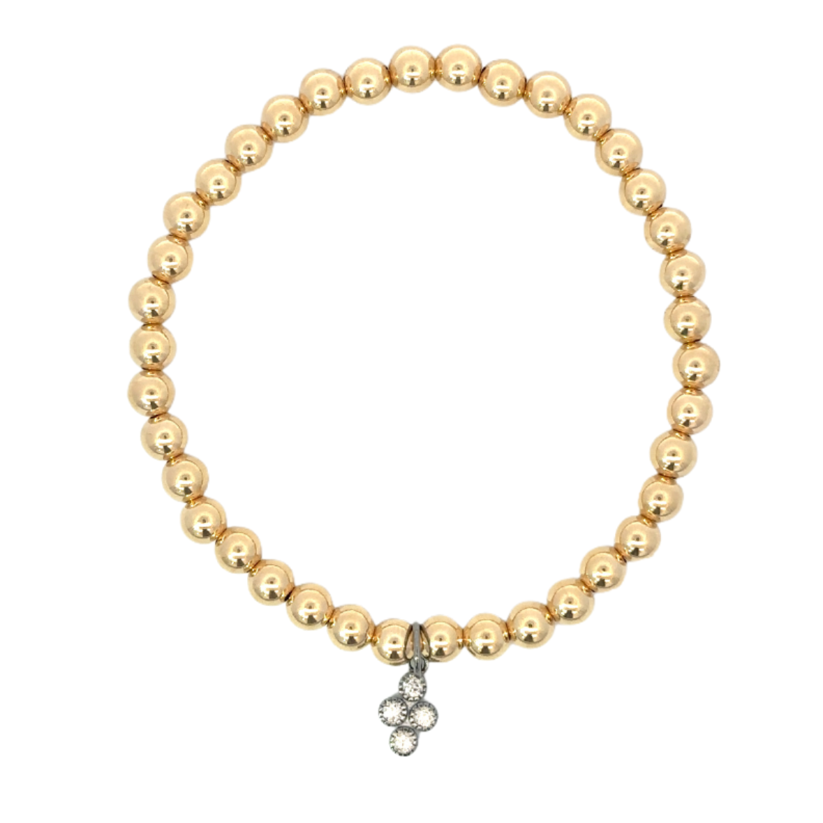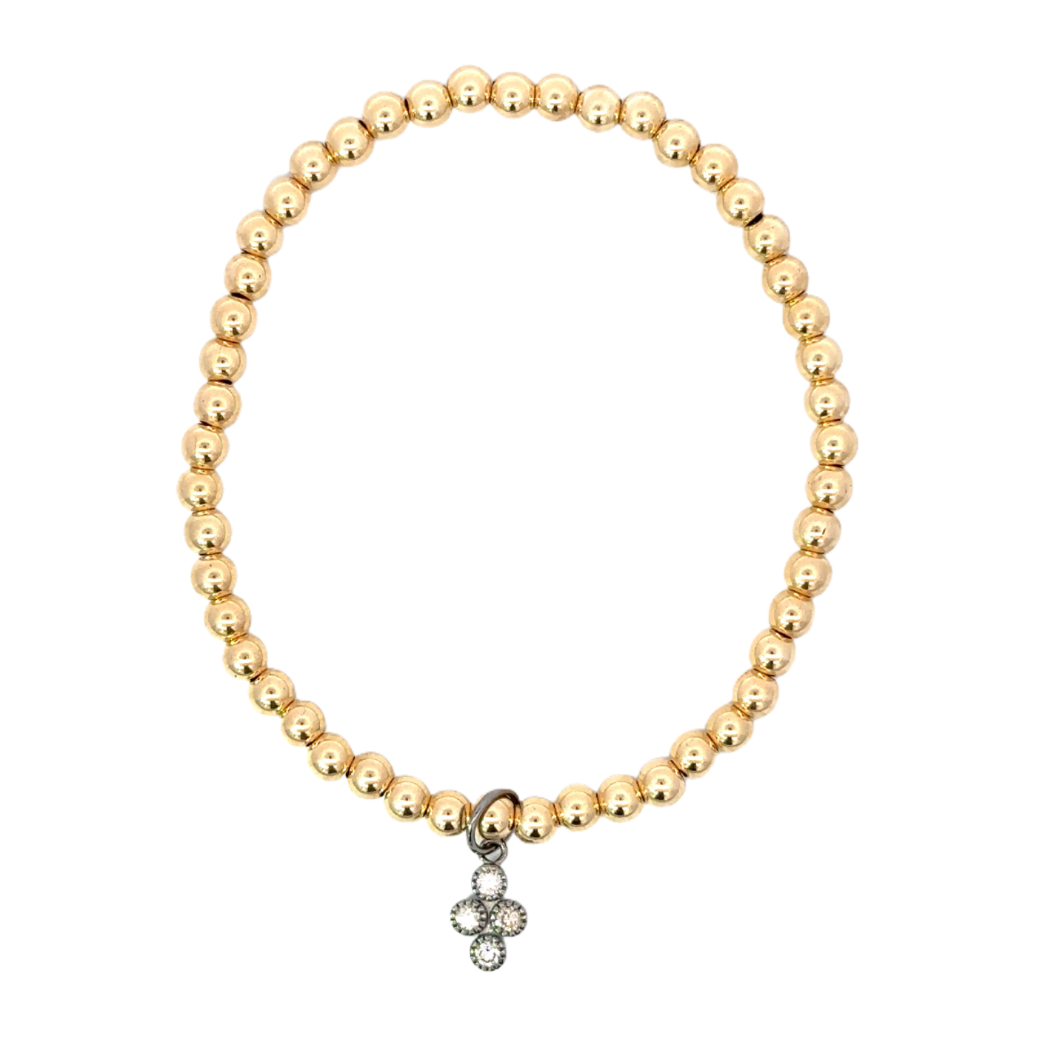 Gold Filled Bead Bracelet with Sterling Diamond Dot Charm