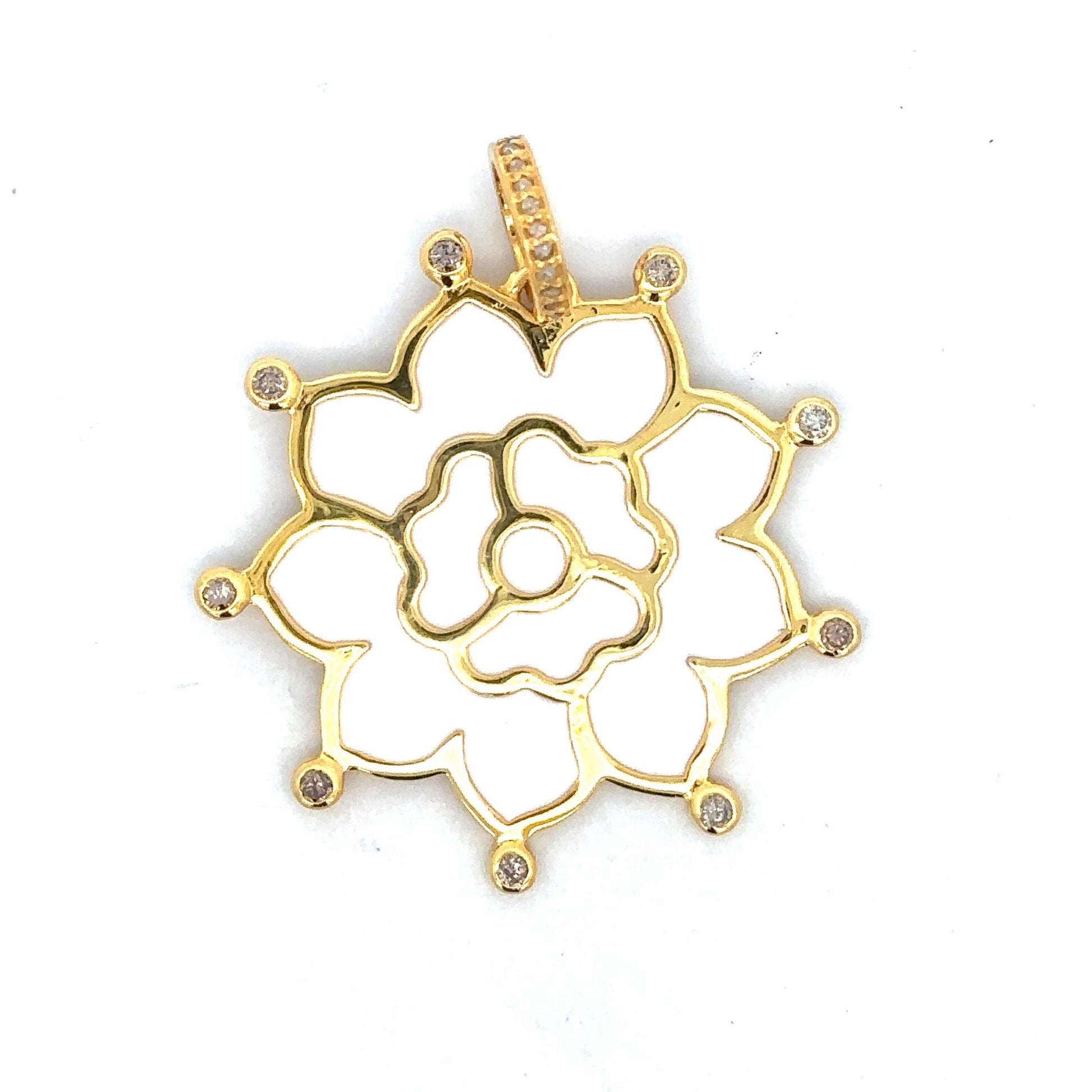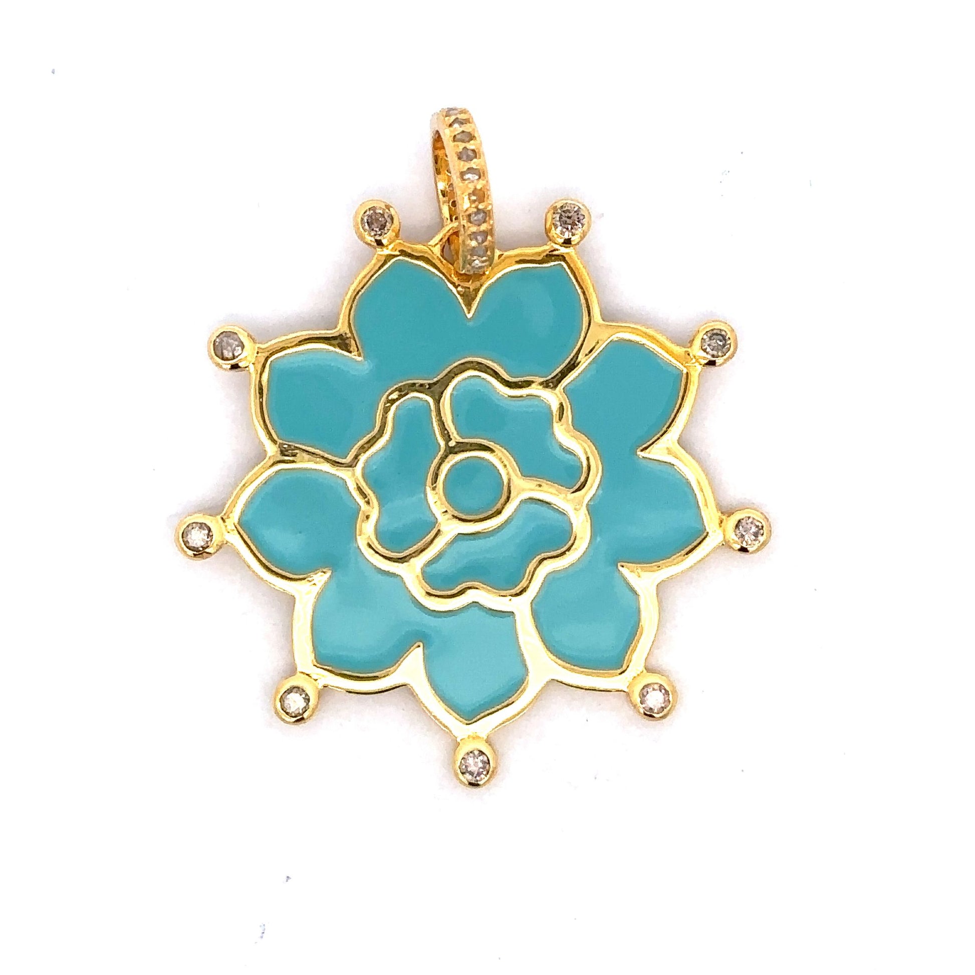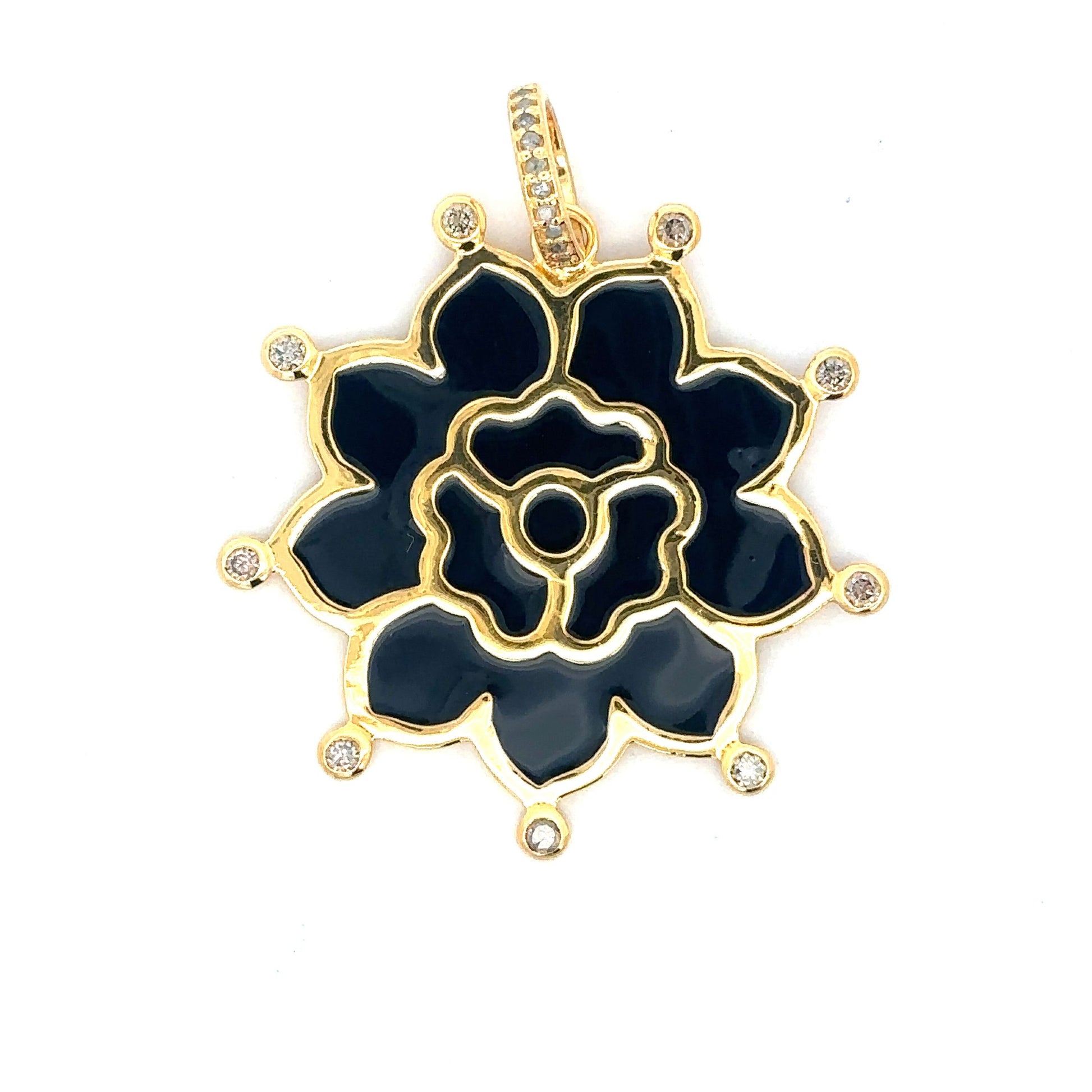 Vermeil Enamel Lotus Flower Pendant with Diamond Accents
